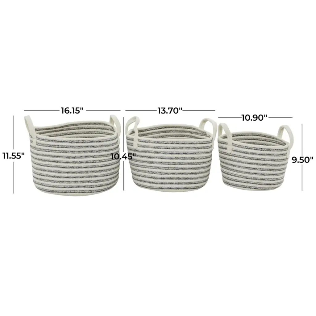 Handmade Coastal Fabric Decorative Basket - Set Of 3 (Set Of 3)