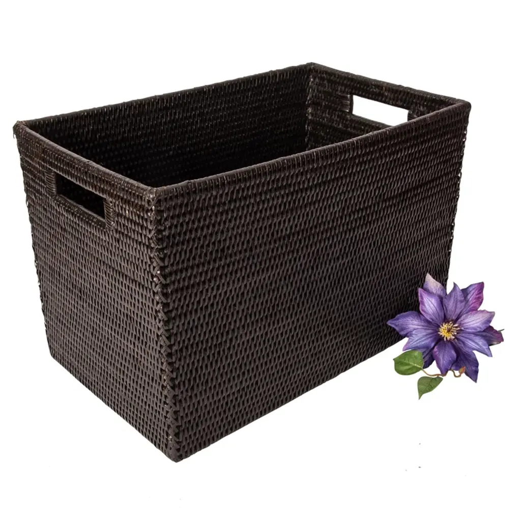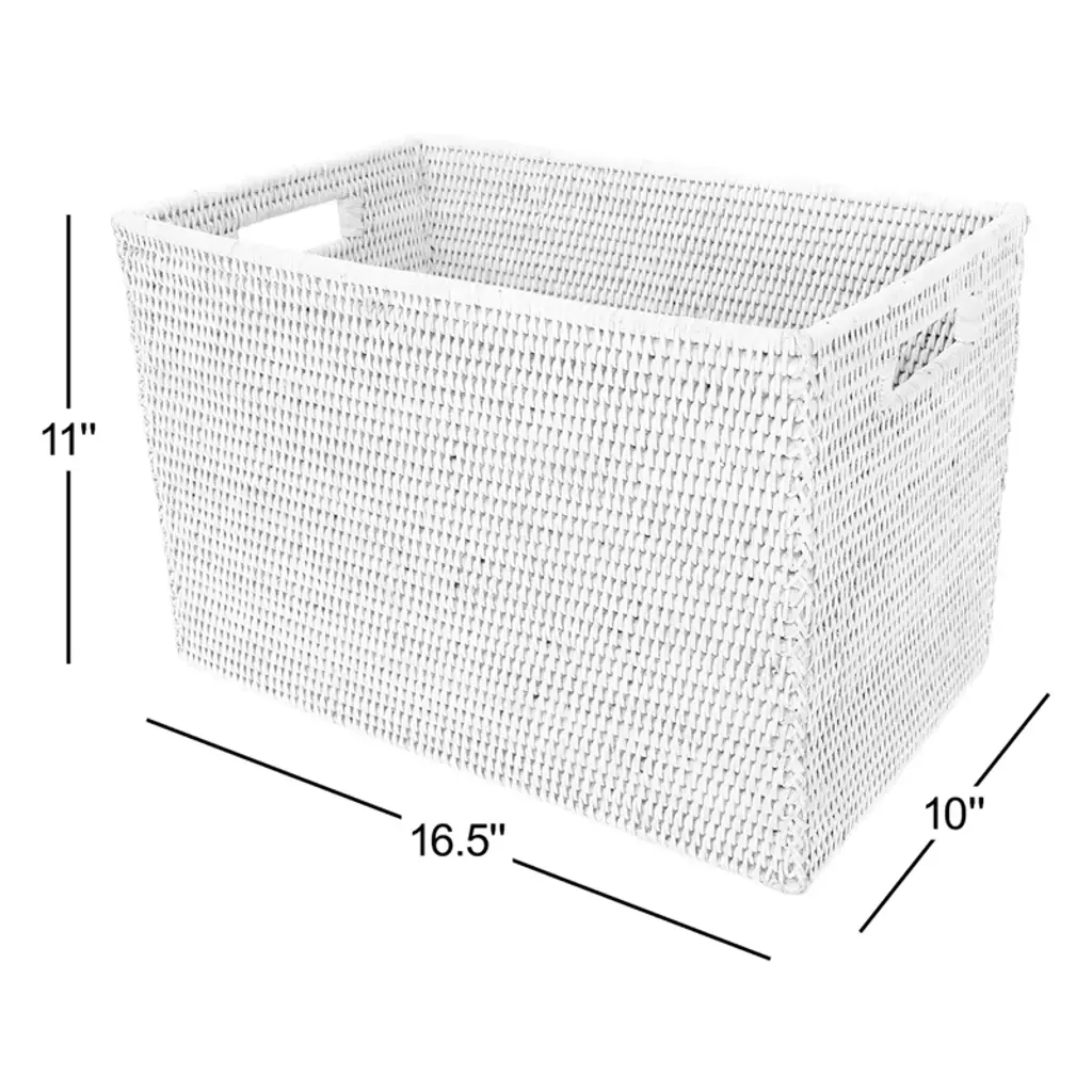 Elevate your home organization with this versatile storage basket, handwoven from natural rattan for a coastal-inspired look. Its spacious design is just the right size for letter-sized files, magazines, or newspapers. The tightly woven design and neutral hue make it a seamless addition to any room, while two built-in handles ensure easy transport. Whether it's in your master suite, living room, or home office, this basket is a stylish and functional choice for decluttering your space.