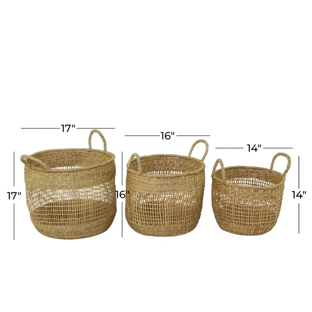 Handmade Seagrass Basket With Handles - Set Of 3 (Set Of 3)