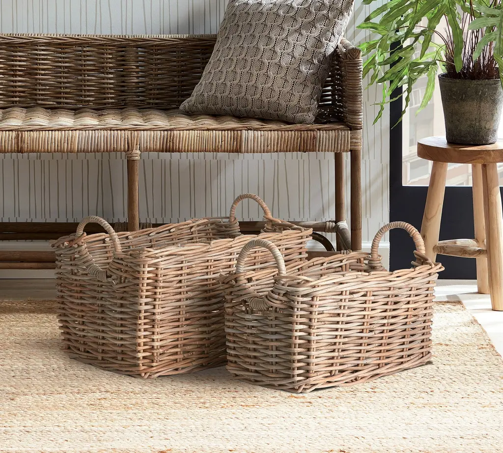 Handwoven Rattan Rectangular Baskets - Set Of 2