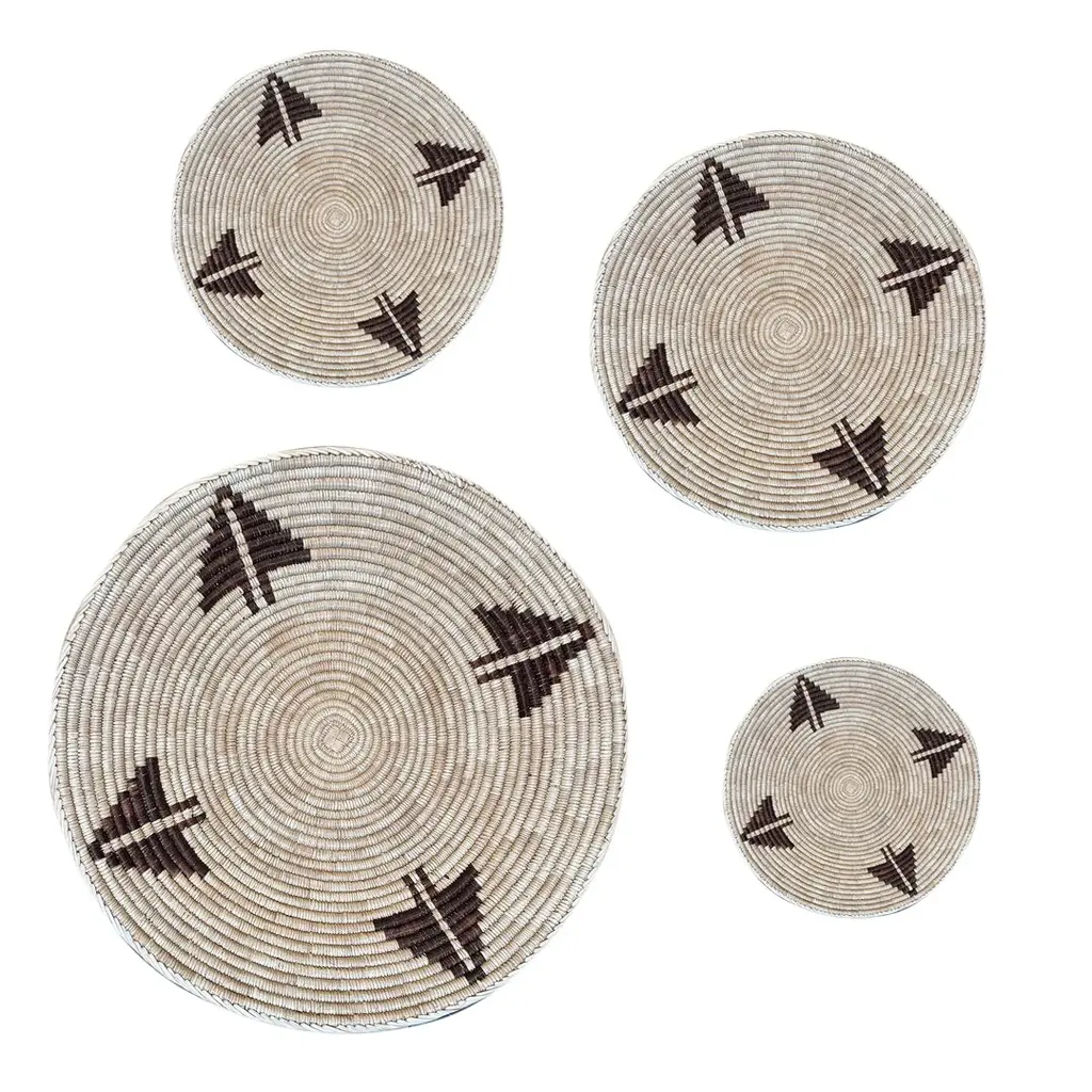 This hanging wall basket is a stunning blend of sustainability and traditional craftsmanship, designed to complement modern, minimalist, farmhouse, coastal, and bohemian interiors. Handwoven from natural fibers, these woven wall hanging baskets add warmth and texture to a living room, bedroom, entryway, or dining room. Available in small, large and oversized options, these baskets for hanging on walls are both decorative and functional., Lightweight and easy to install, these hanging wall baskets create a striking visual impact., Versatile and timeless: Complements various interior styles, adding depth and texture. , Sustainably crafted: These African hanging wall baskets are ethically made from durable, eco-friendly materials.