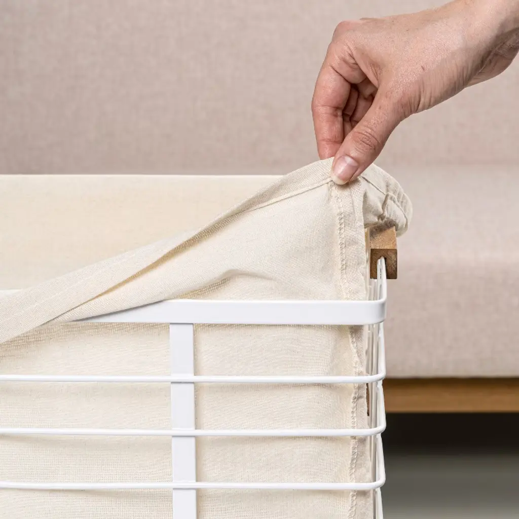 Happimess Callan Vintage Industrial Handmade Wire Metal Nesting Storage Baskets With Wood Handles And Fabric Liner, White (Set Of 3)