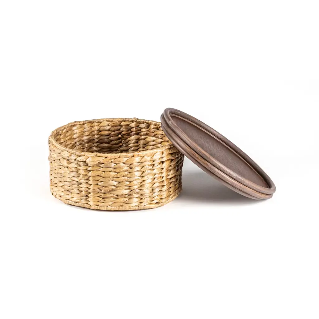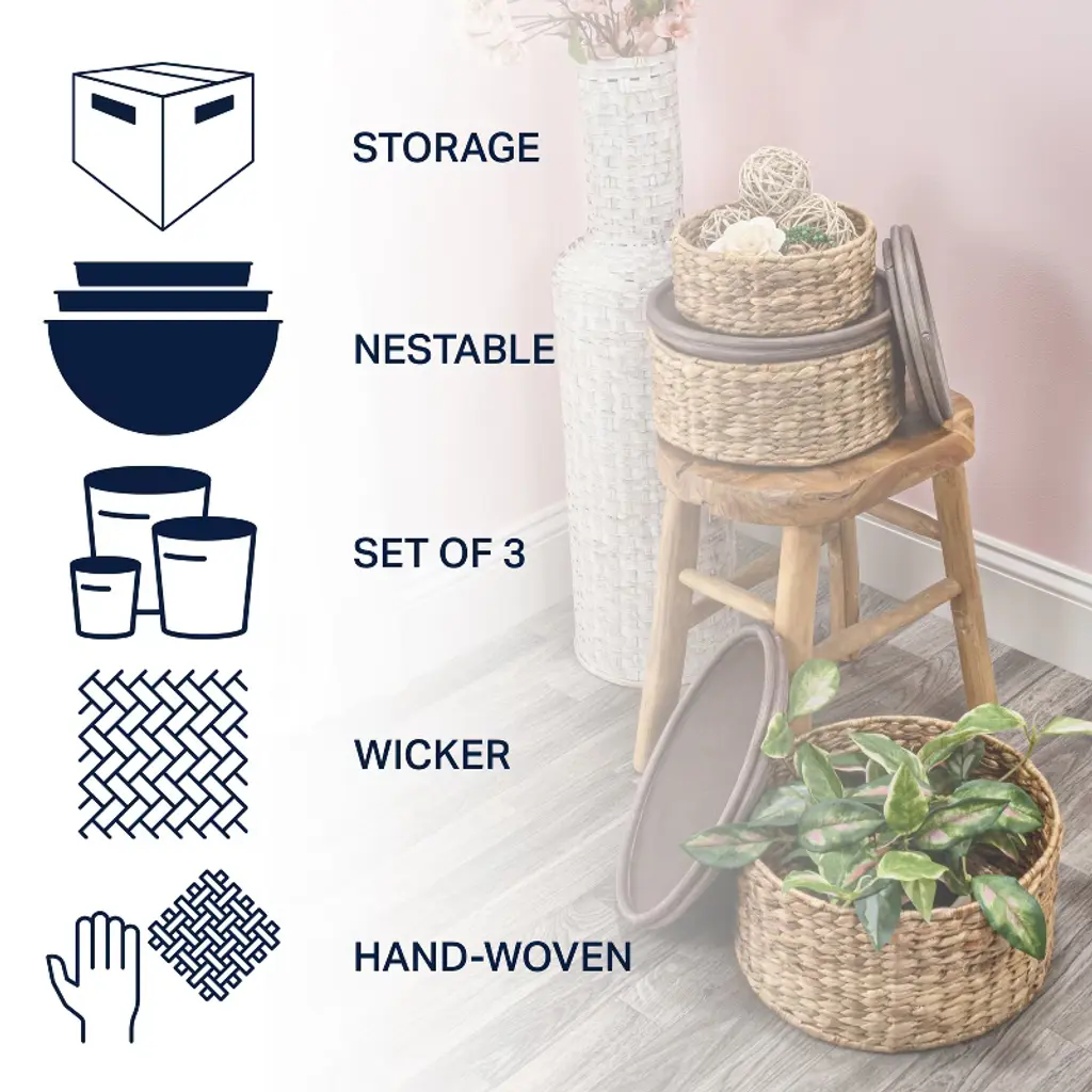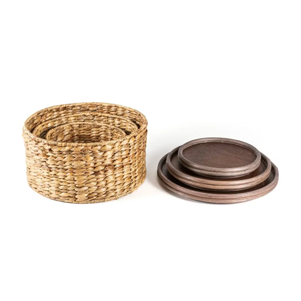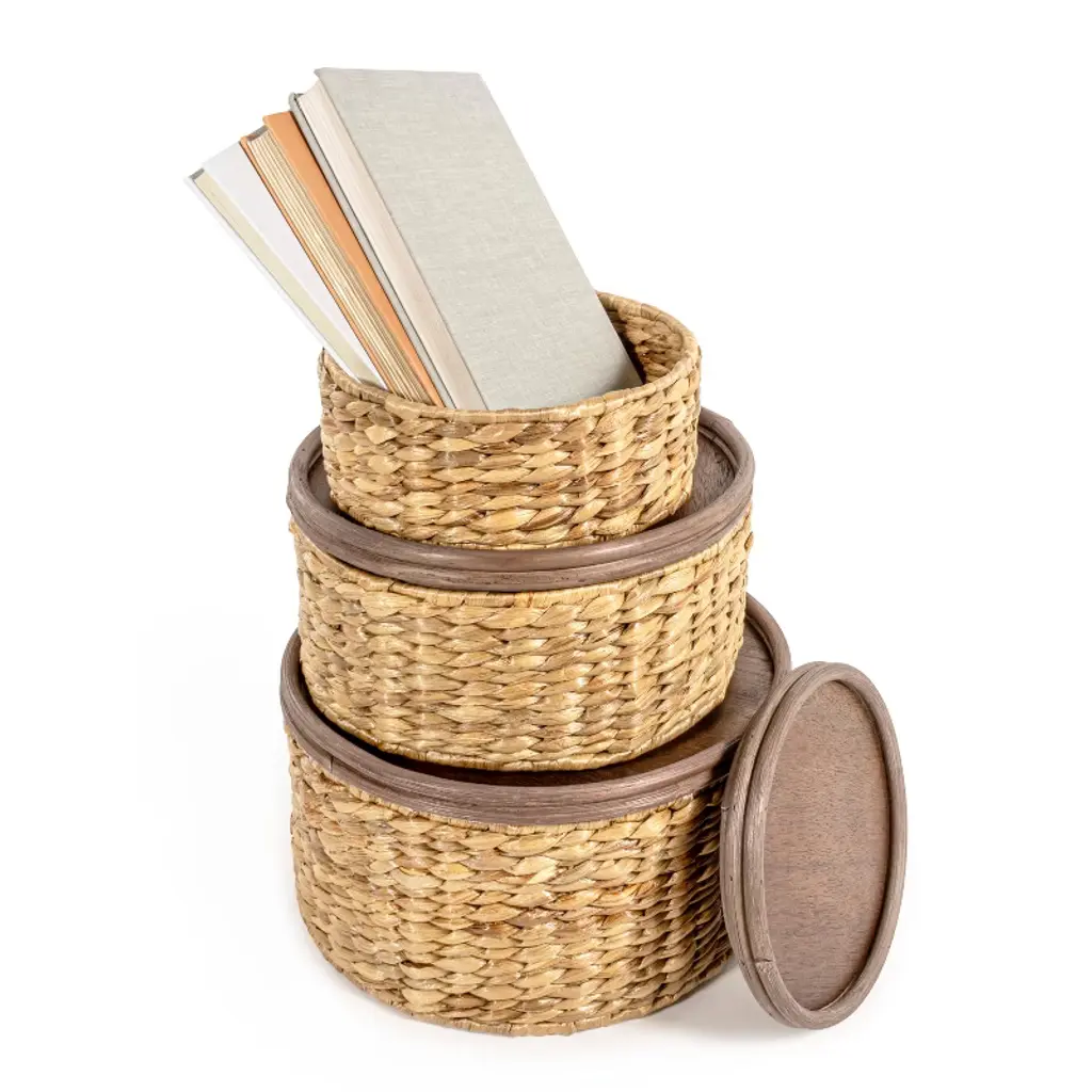 Happimess Gouda Southwestern Hand-woven Hyacinth Circular Nesting Baskets With Wood Lids, Natural (Set Of 3)