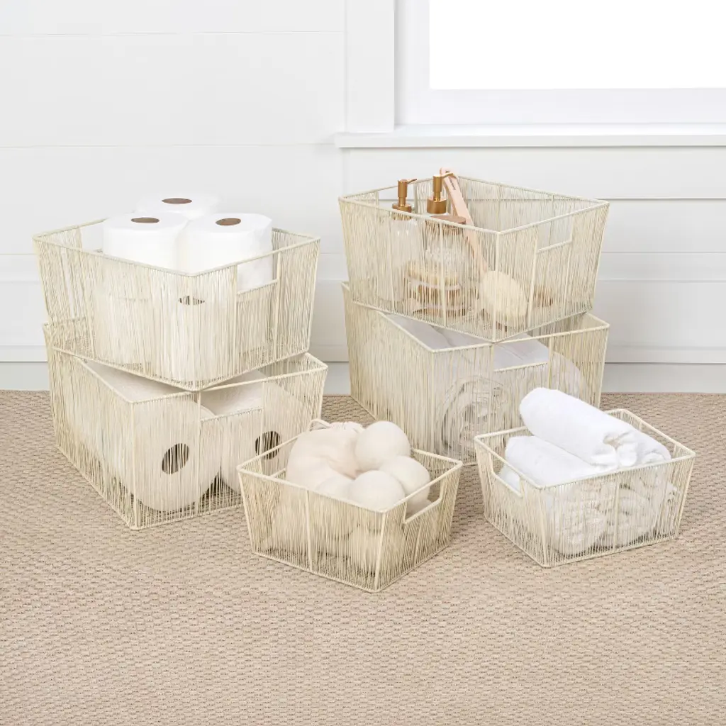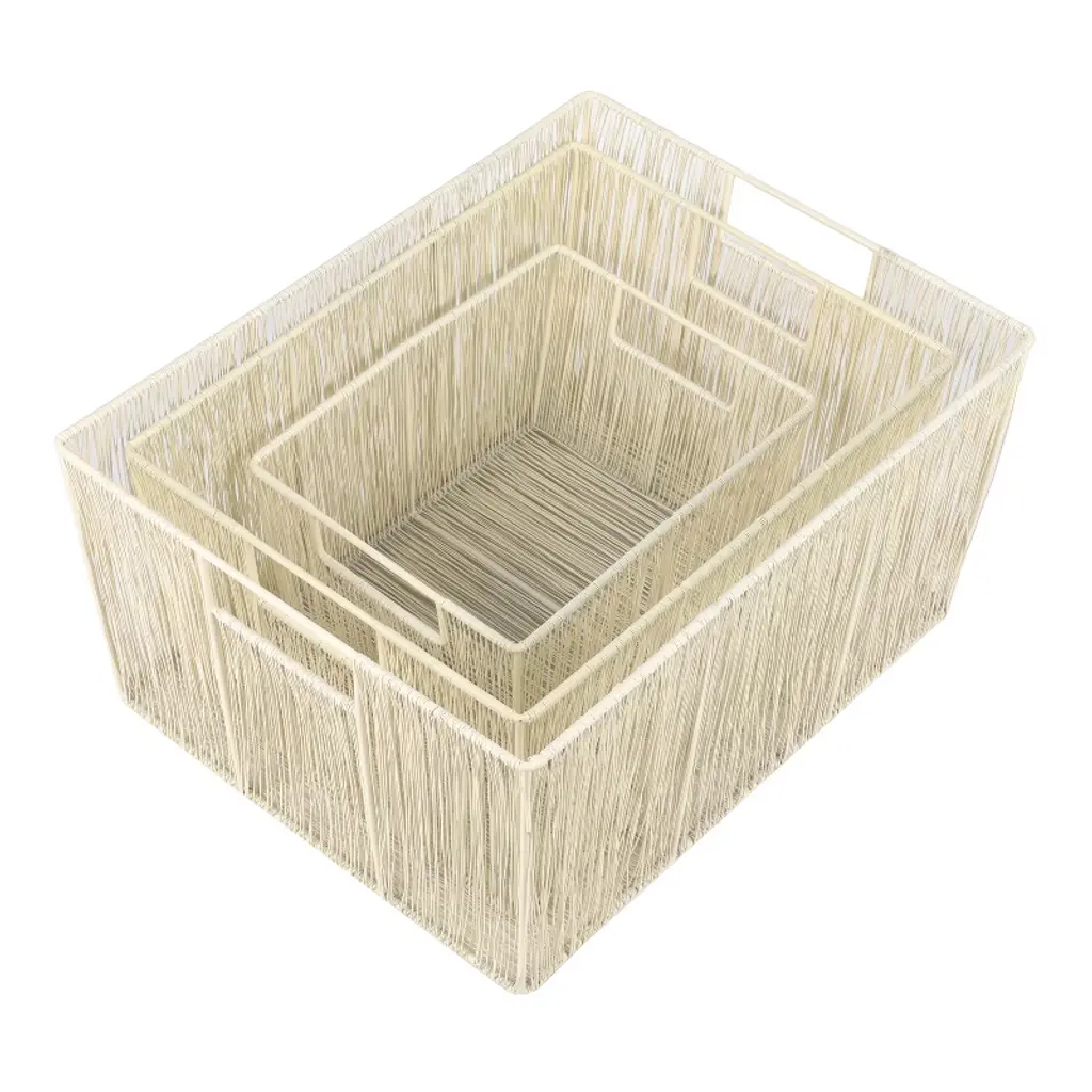 Happimess Sutton Modern Glam Handmade Wire Metal Nesting Storage Baskets, Almond (Set Of 6)