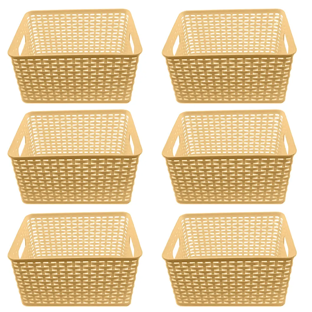 Organize a home office, bathroom or kitchen shelves with these modern nesting baskets. Set includes six baskets in three sizes to fit perfectly in a cabinet or on open shelving. Durable design features sparkling metal wires for a touch of glam in any space