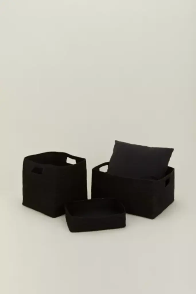 A woven basket for keeping things out of sight. We love this size for organizing the linen closet, pantry, or by the couch for magazines. \- Sea Grass \- Dust as needed \- Imported **Size + Fit** \- 9" H x 14" W x 17" L