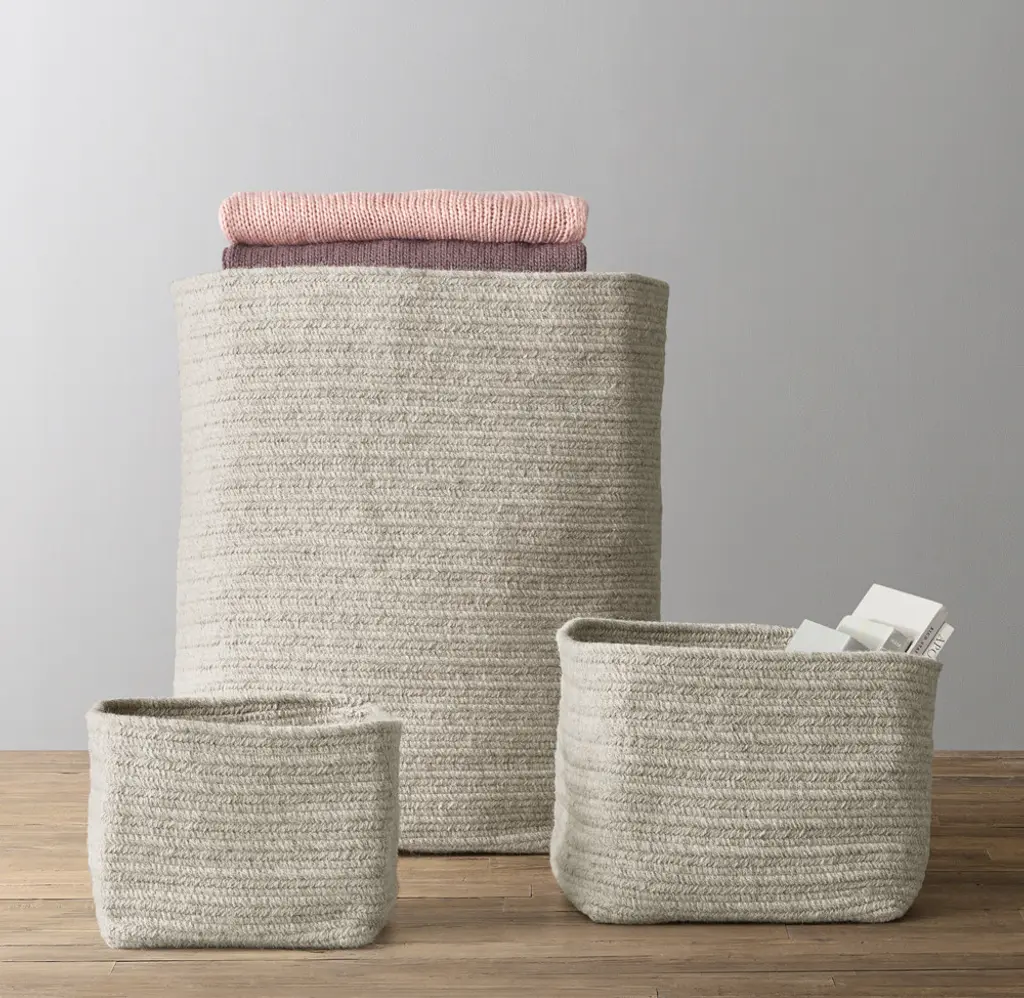 Pure, unbleached wool gives our storage basket its naturally heathered highs and lows and a soft, textural hand.