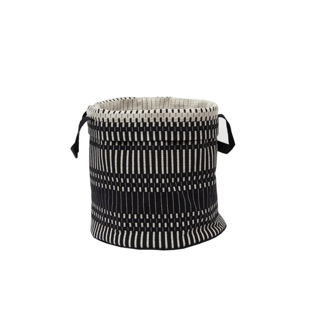 Johanna Gullichsen’s Helios fabric basket is a modern interpretation of old Finnish weaving traditions. The different sizes of Helios baskets provide an elegant storage for clothes and toys as well as accessories, bath essentials and other small items. Helios pattern is part of Johanna Gullichsen’s Normandie collection, inspired by the era of luxury ocean liners and slow, elegant way of traveling. Made of thick, double-sided cotton, the Normandie collection features various graphic patterns in Scandinavian tones, designed and woven in Finland.