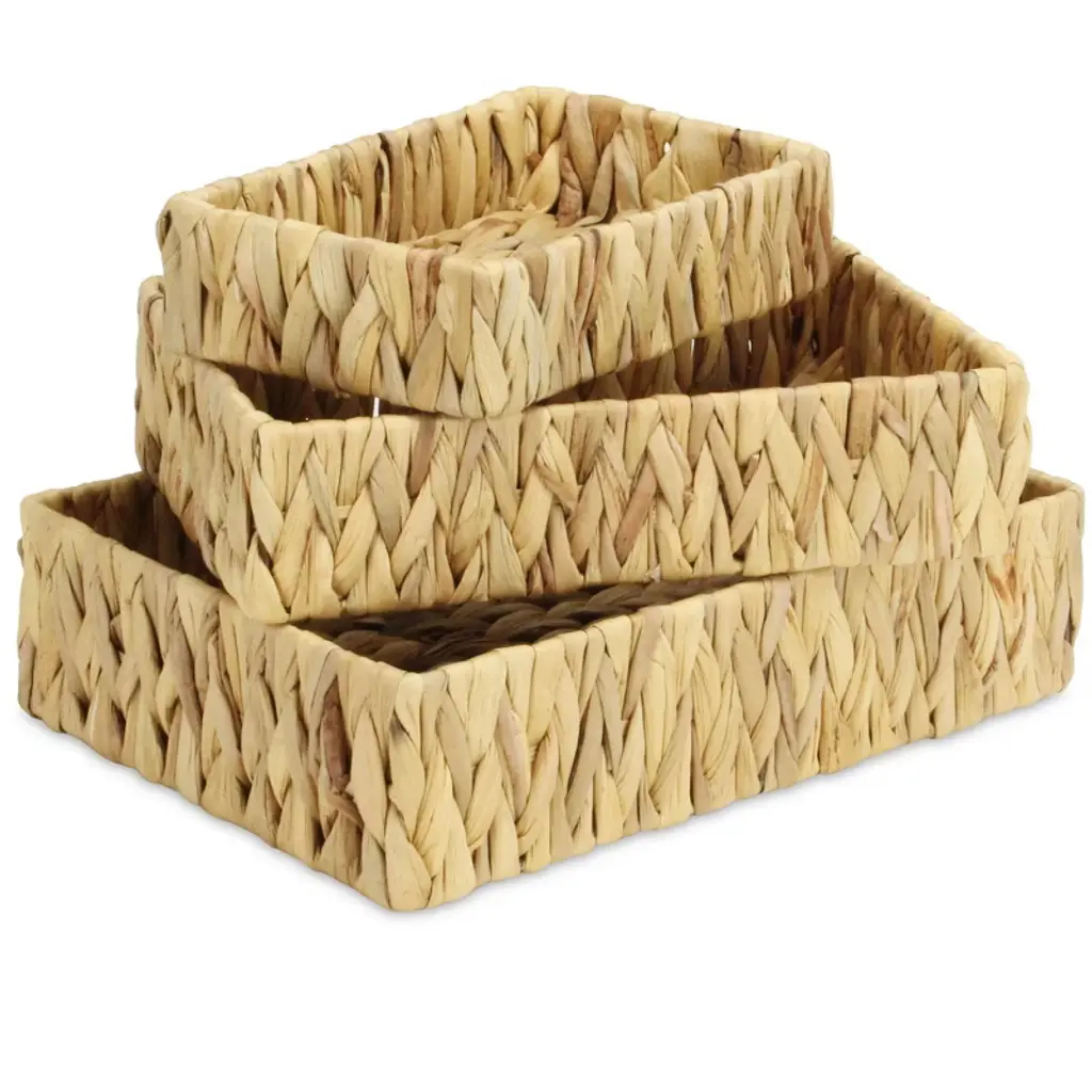 Homeroots Set Of Three Natural Water Hyacinth Rectangular Baskets