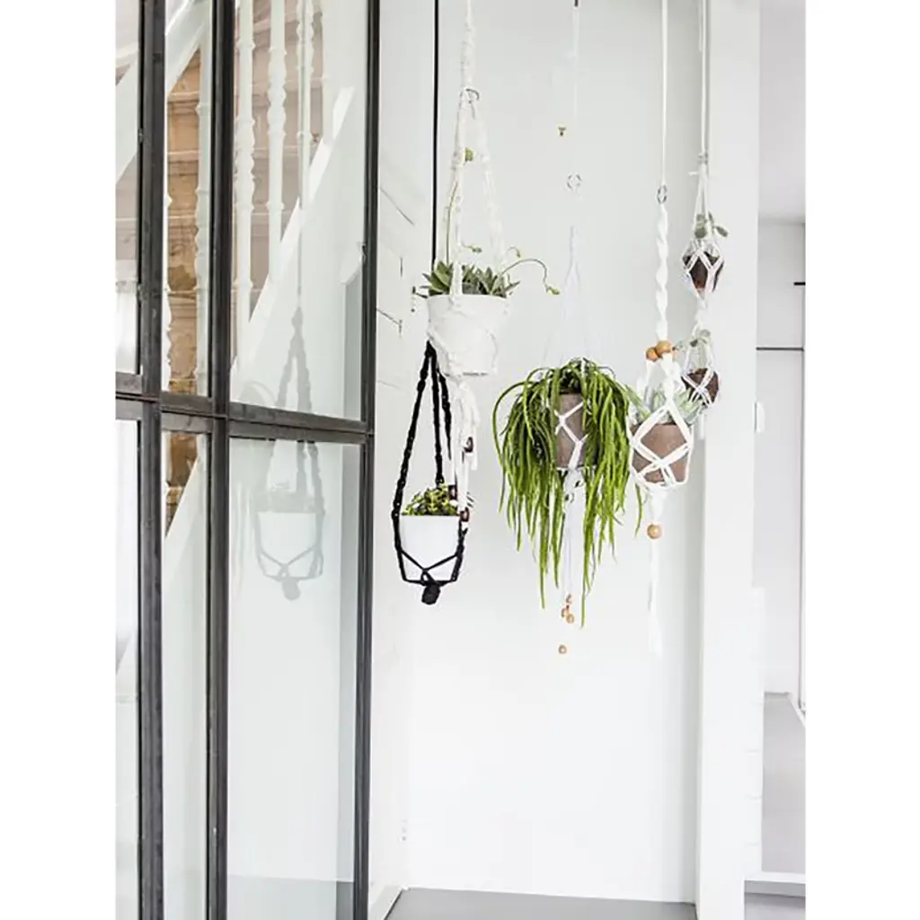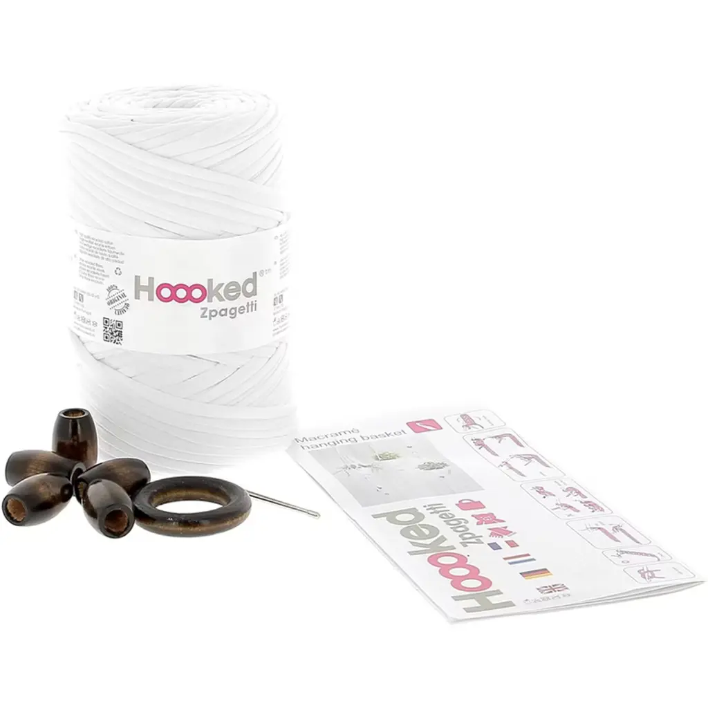 Hoooked-Macrame Hanging Basket Kit With Zpagetti Yarn. Learn how to make your own simple DIY Macrame Plant Hanger. This simple project is a fun way to add more greenery and life to your space. The macrame technique is making its comeback! This technique does not require a lot of practice and there are endless variations possible.Get started and macrame yourself some of these fabulous hanging baskets! With this set you can make three macrame hanging baskets for your plants. This Hoooked Zpagetti kit contains: -60 meters Zpagetti-One wooden ring-Assorted wooden beads for 1 hanger-XL Zpagetti Needle-Instructions