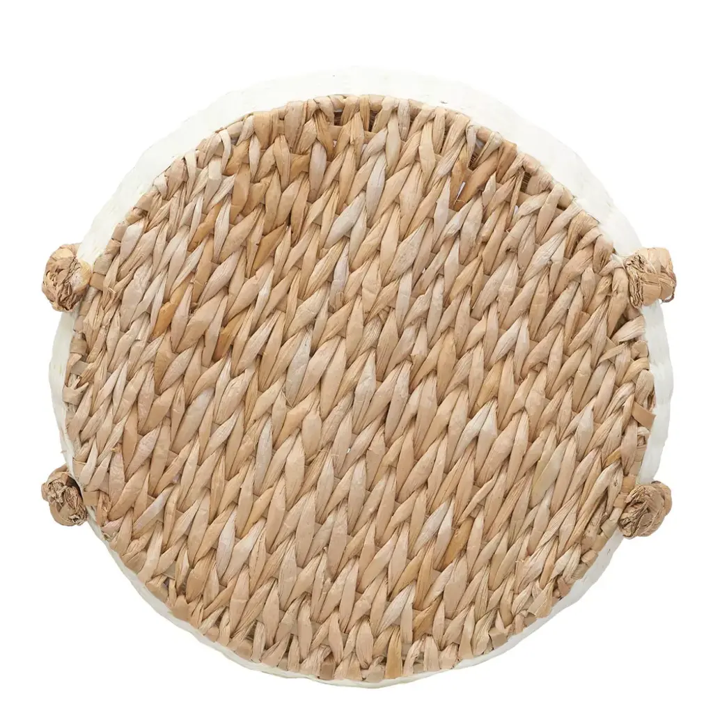 Household Essentials Terra Basket With Handles Cream: Handwoven Paper Rope Storage, Round Wicker Basket For Blankets