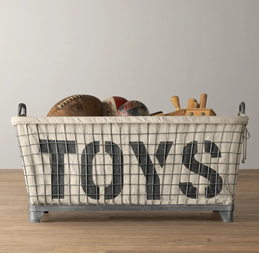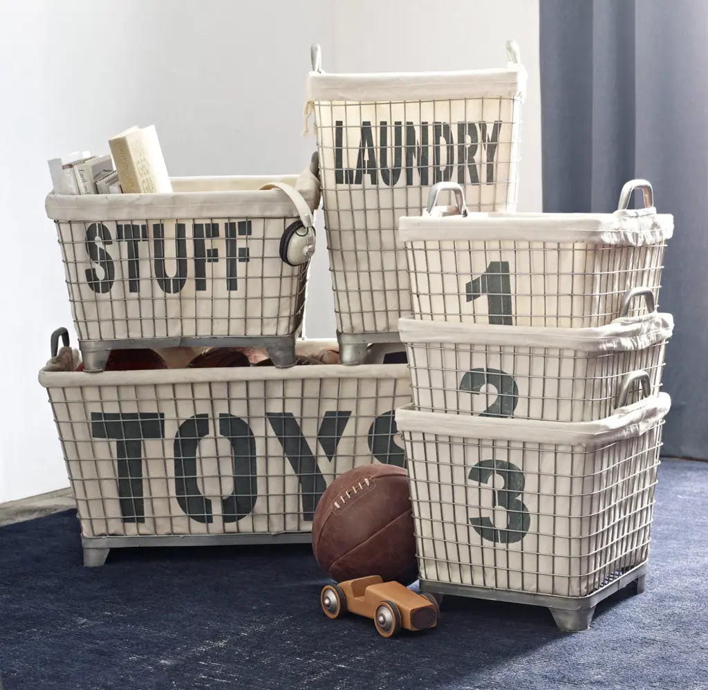 Modeled after the rugged wire bins found in industrial settings, our welded steel basket is outfitted with sturdy handles and raised feet.
