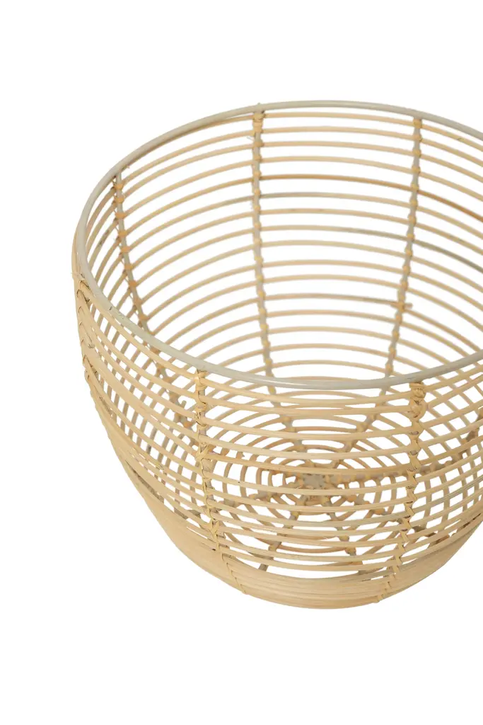 This unique basket, handwoven by artisans in India with rattan and cane, offers a unique blend of transparency and functionality, making it an ideal choice for use as a planter or stylish storage for small items. With its transparent rattan, cane, and iron construction, it offers a stylish way to organize your space while adding a touch of natural elegance.