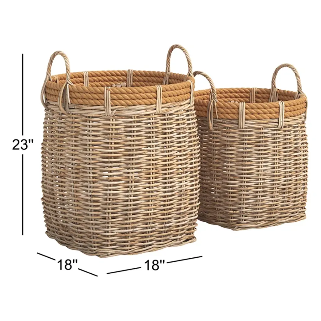 Keep throw blankets and magazines right within reach in your living room with this 2-piece basket set. They’re made from thickly woven rattan with a natural hue, and they're accented on the top with textured rope detailing for a breezy, coastal feel. Plus, they have a small and large design that are easy to corral whatever you need to tuck away - from umbrellas and gloves in the entryway, to pillows and books in the den. We love that these storage baskets have handles on the side to take them wherever you need them.