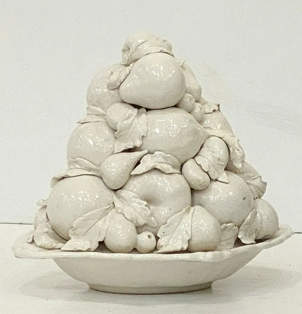 Italian Creamware Oval Centerpiece Basket With Mixed Fruit Top (Two Available)