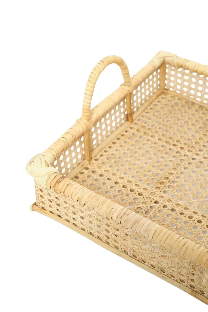 Transform any space in your home with this large handmade woven cane and rattan tray. From a stylish serving tray for entertaining guests to a practical organizer for your home essentials, this tray adapts effortlessly to your needs. Handmade by artisans in India, the natural textures and tones of this tray add warmth to any room.