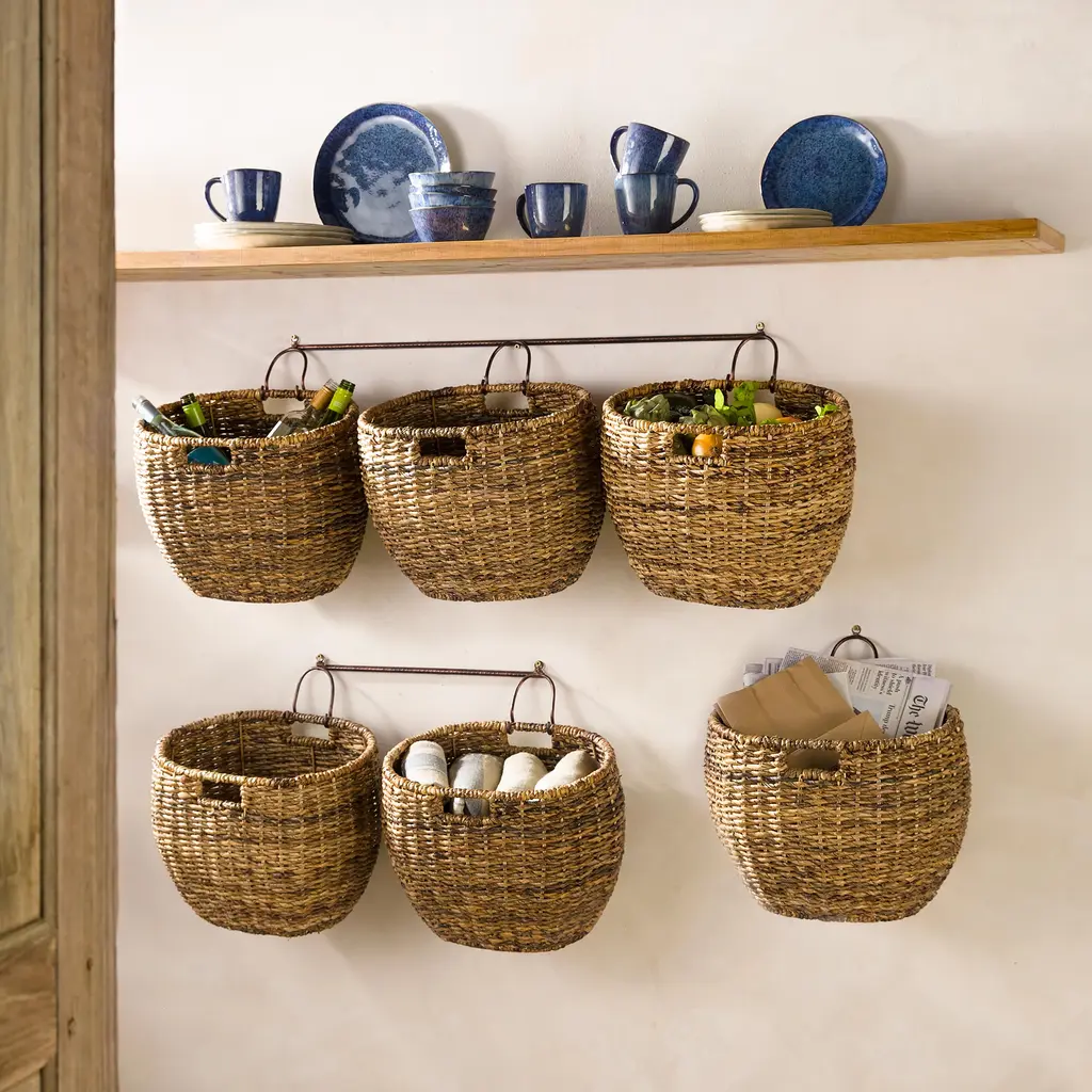This heavy-duty Javanese Woven Storage Basket are made of banana bark fibers that are hand-woven over metal frames which allows them to hold up to 200 lbs each. Perfect for a pantry, mudroom, or garage.