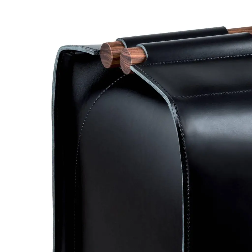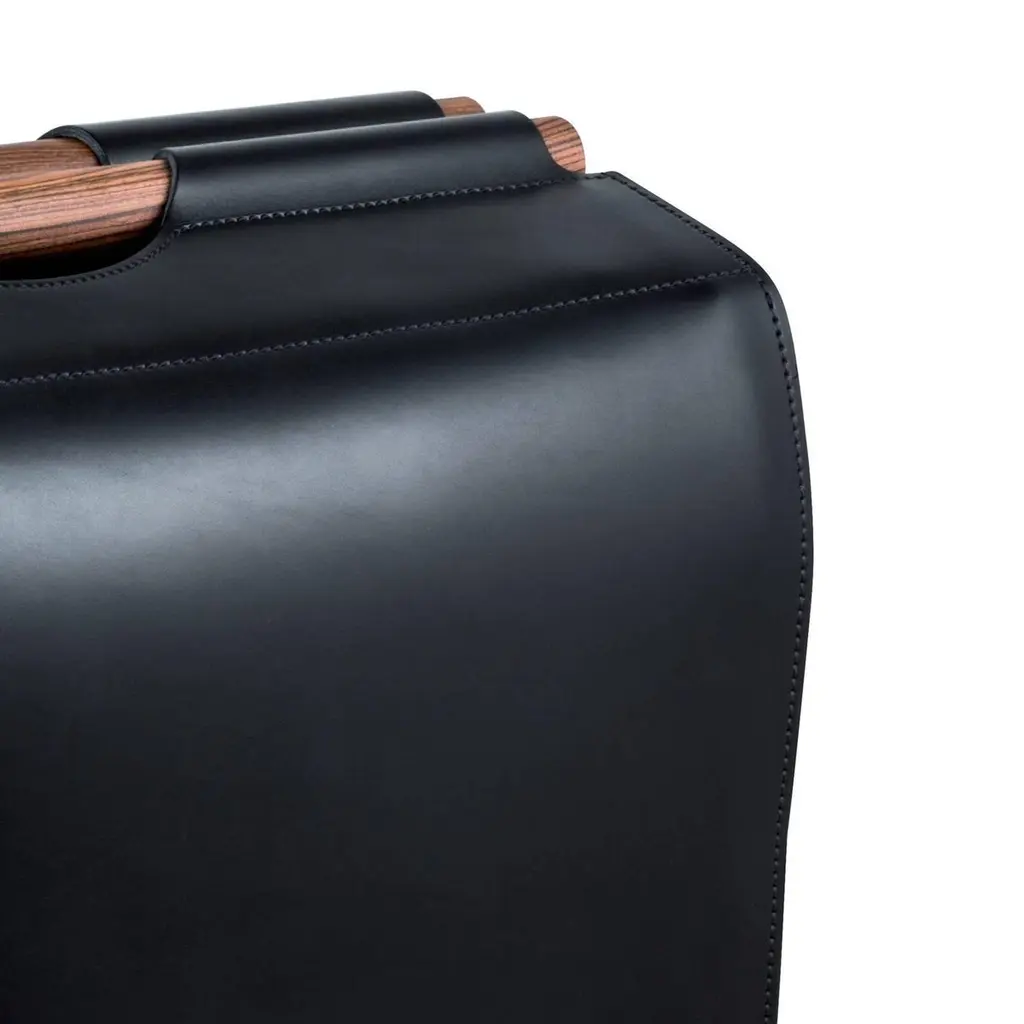Elegant and timeless, this unique storage basket will be a precious companion to everyday life in any room of the house. Its body, shaped as a rectangular suitcase, is made entirely in saddle leather, whose soft texture was dyed using vegetable pigments. The basket can be closed, thanks to the two handles at the top, made with two pieces of solid rosewood. Exquisite craftsmanship and contemporary design meet in this object that will complement any decor.