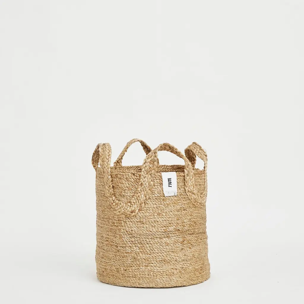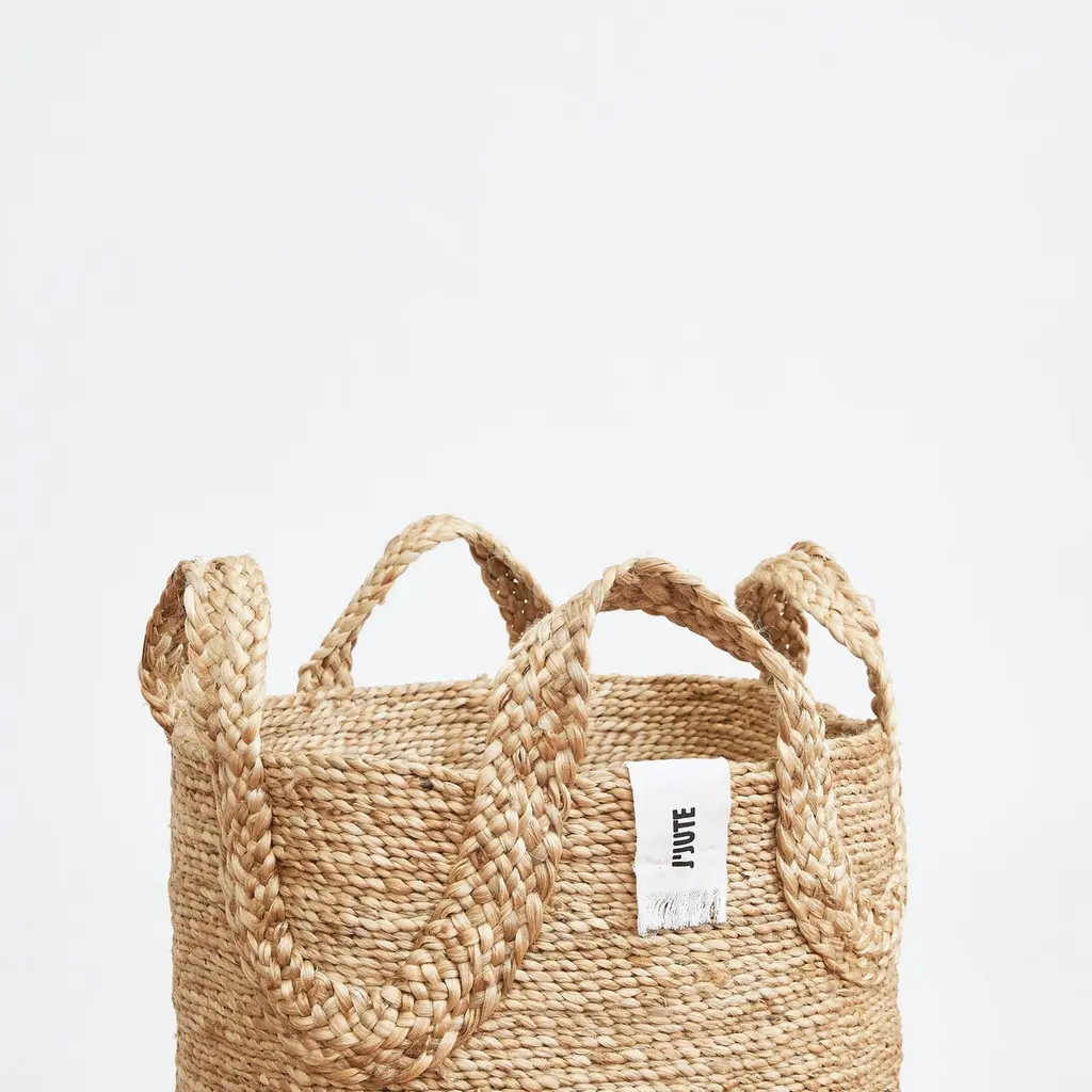 Architectural India is a collection built on the Natural & Modern landscape of India. Each J'Jute style signifies a piece of the architects, Le Corbusier & Pierre Jeannette's modern urban planning project in Chandigarh. Product InformationColour: NaturalMaterial: Natural Jute- a soft durable plant fibre Dimensions: 40cm (16") Diameter at base x 40cm (16") High. Handles are 8cm (3") wide and will sag slightly. Total basket height is 50cm (19.6") high when Handles stand up.Purpose: Luxury Laundry basket and the perfect size for House Plants.Due to the handcrafted and natural nature of J'Jute's products, sizes may vary slightly. No Labeling