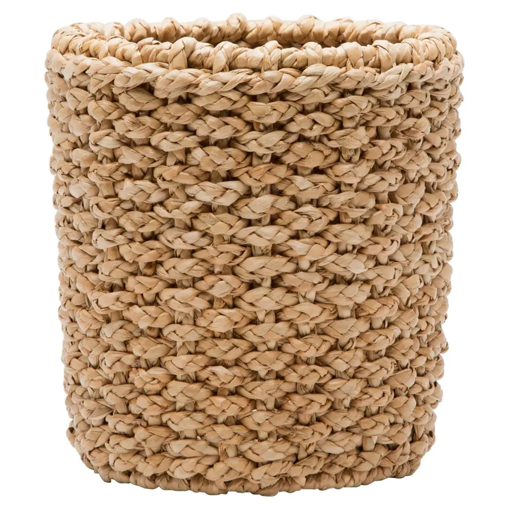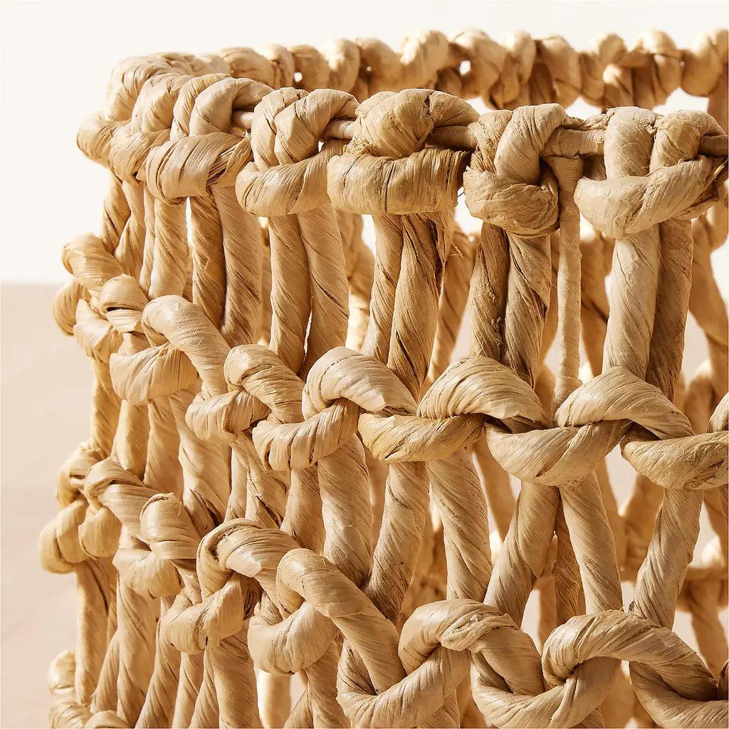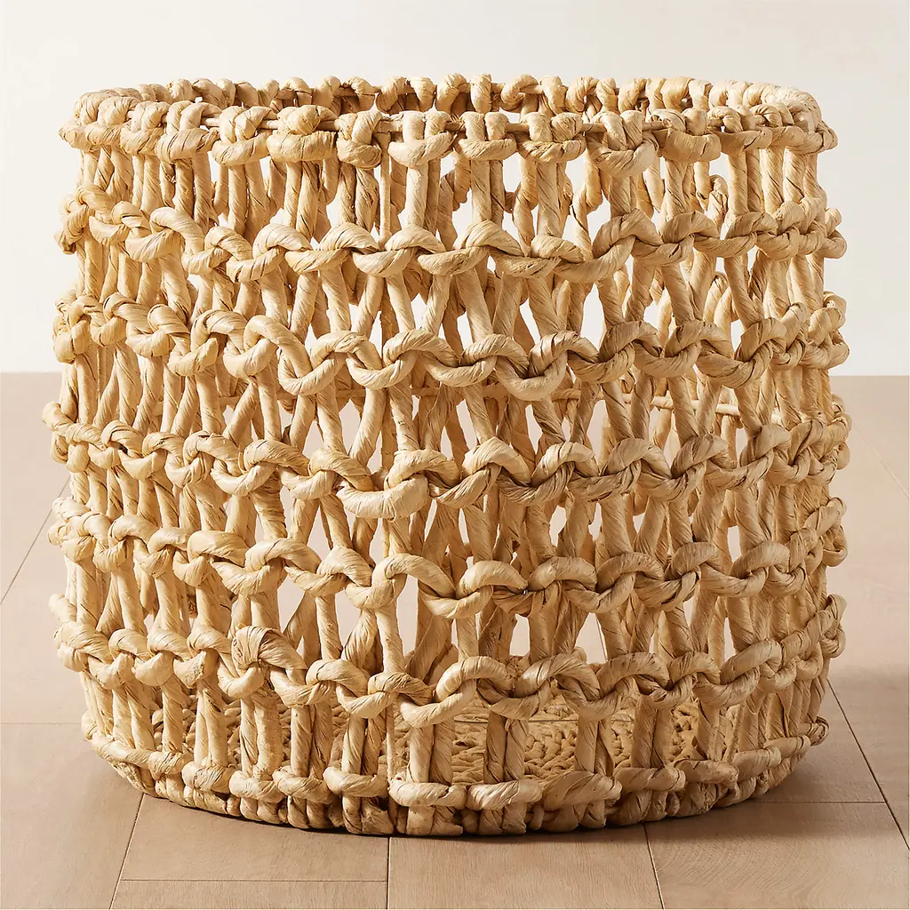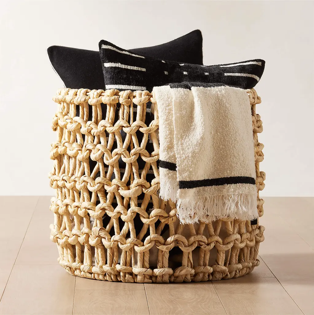 Woven of bleached banana bark, large floor storage basket keeps things organized. The chunky weave offers organic appeal to the round silhouette. CB2 exclusive.