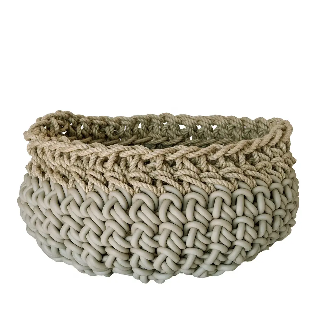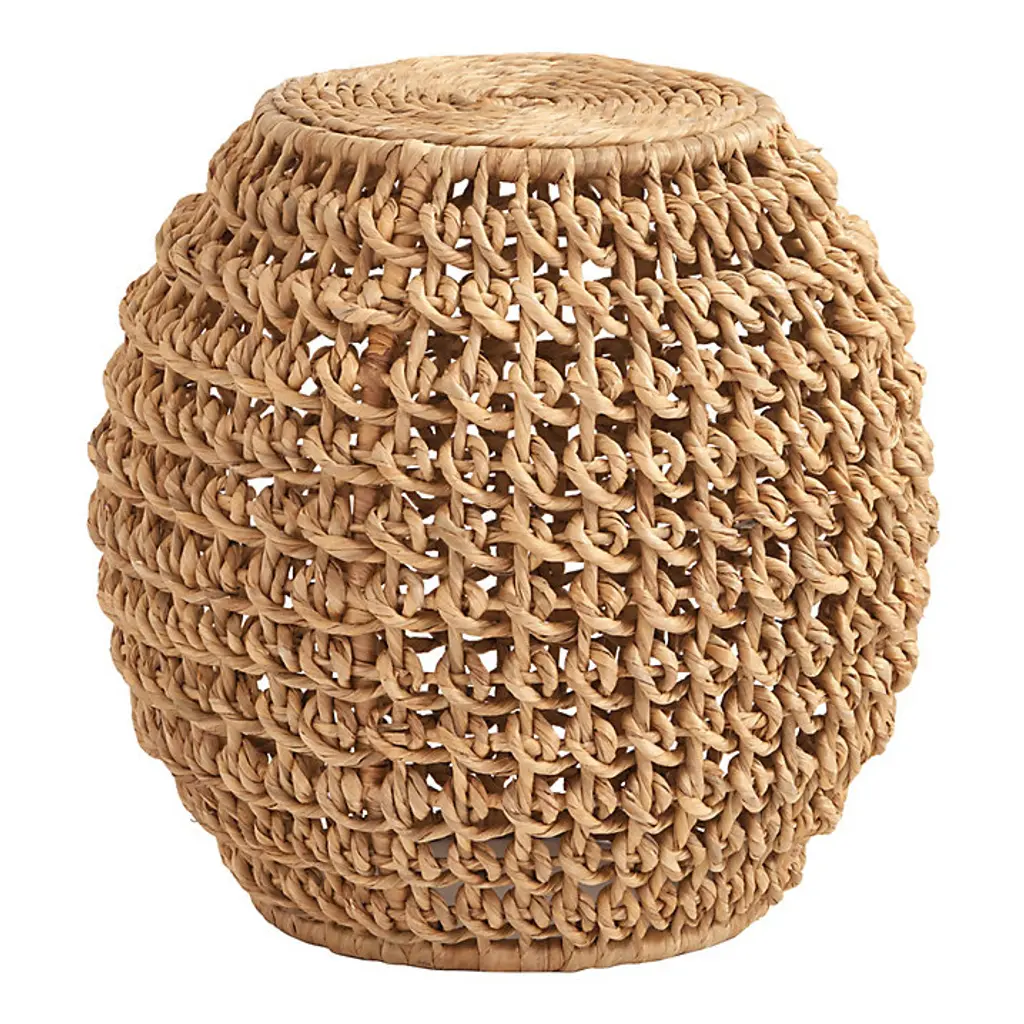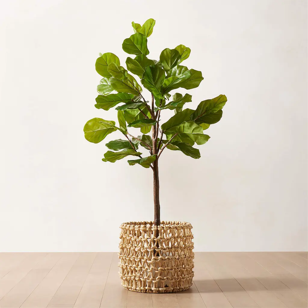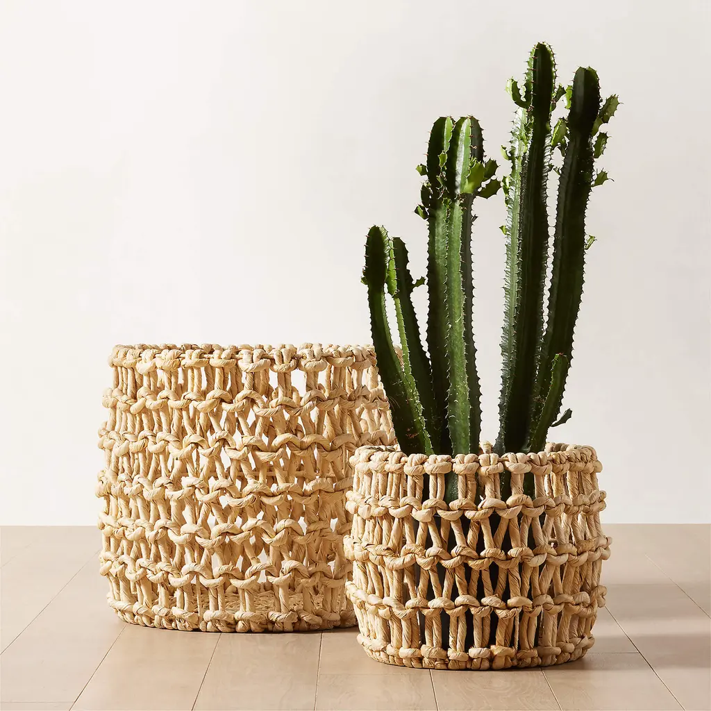 Woven of bleached banana bark, large floor storage basket keeps things organized. The chunky weave offers organic appeal to the round silhouette. CB2 exclusive.