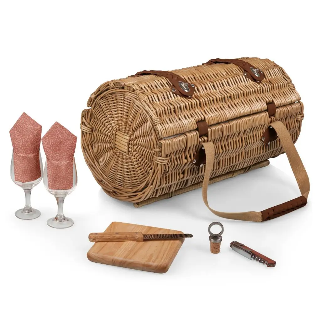 Kattie Rustic Brown Willow Blue Lining Picnic Basket With Serveware For 2