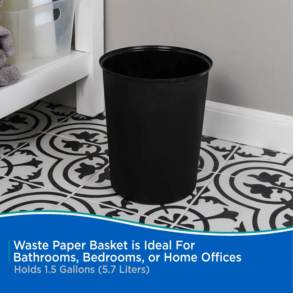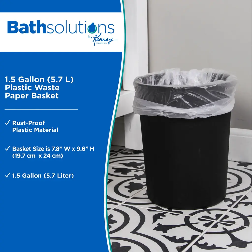 Kenney Storage Made Simple Plastic Waste Paper Basket - Black