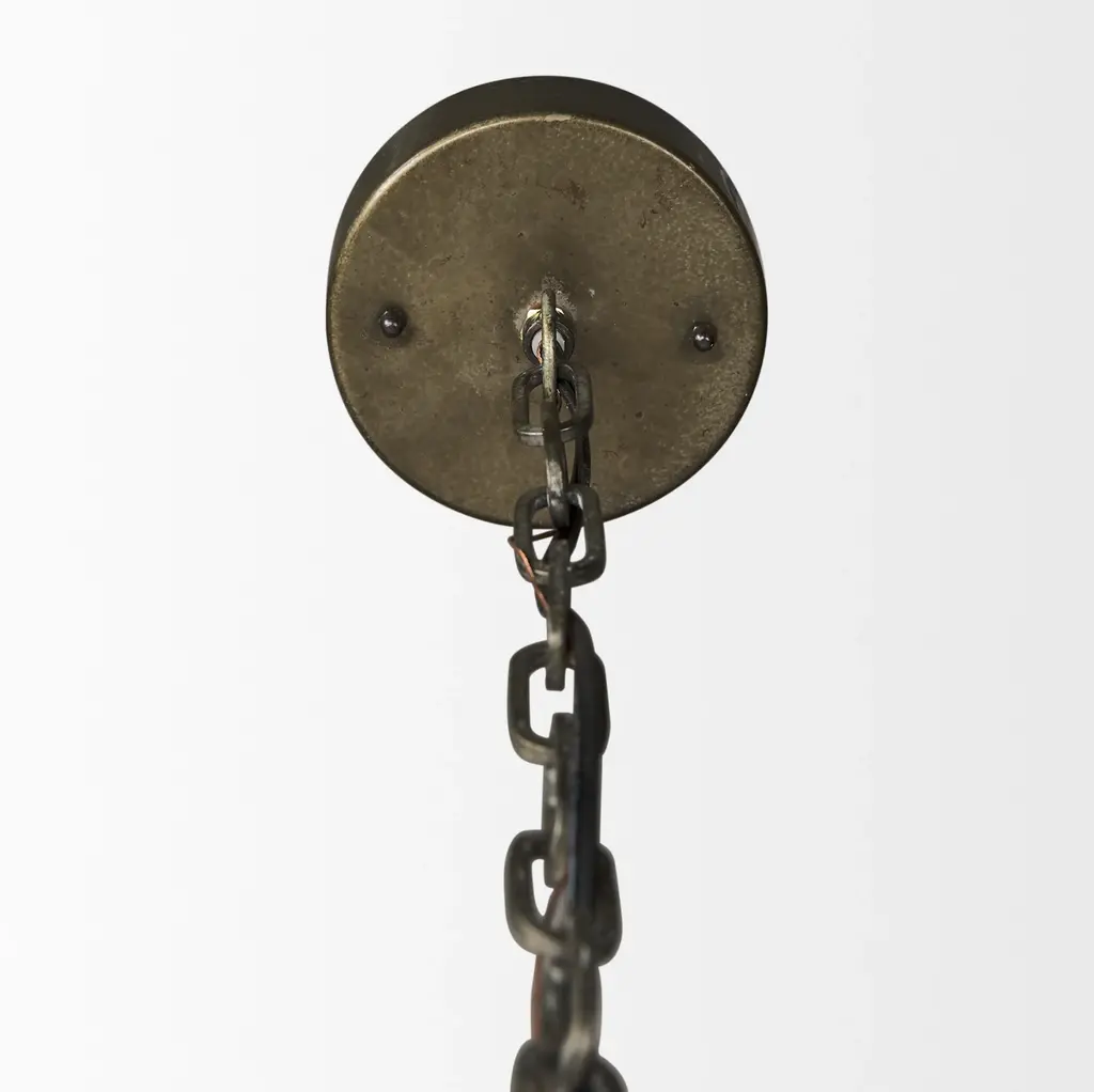 A one-of-a-kind lighting fixture that features a delicately woven wicker basket cased by square frames in a light brown finish and suspended by antiqued gold down rods. Bulb is not included.