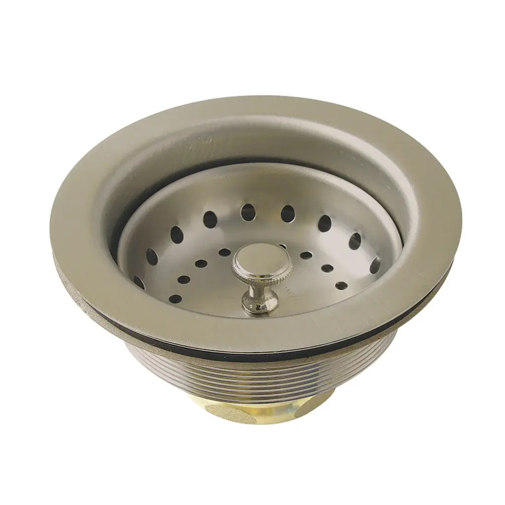 Easy to install and able to fit above most standard kitchen sink drain openings, the Fresno stainless steel kitchen sink basket strainer keeps unwanted items from clogging your drain. The available premium finish options puts the finishing touches on your kitchen design as you can coordinate the sink drain with your faucet.FeaturesFits sink with 3-1/2" drain openingIncludes brass lock nut and removable basket4-7/16" overall diameter2-3/4" heightCorrosion-resistant finishEasy installation to save you time and effortProp 65 disclaimerWARNING: This product can expose you to chemicals, including lead which is known to the State of California to cause cancer or birth defects or other reproductive harm, for more information, go to www.p65warnings.ca.gov