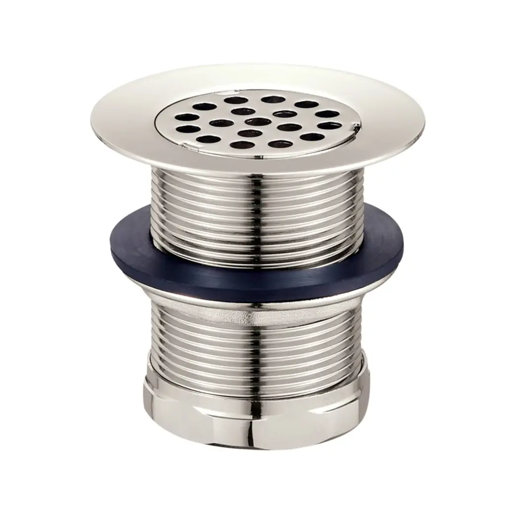 This specialty drain and strainer assembly fits sinks with drain openings ranging from 2" to 2-1/4" in diameter. These unusual 2" drain openings are commonly found in utility, bar, wall-mount, and prep sinks as well as some European sinks. Each drain assembly features a removable top grid. This grid prevents smaller debris from entering the drain and can be removed to clean the bottom of the drain as well as to promote quicker sink emptying. The outer flange diameter is roughly 3" in diameter, the inlet is 1-1/2" OD, and the drain will fit a sink with up to 1-1/2" bottom thickness.Kingston Brass KBU100 Features:Kingston Brass KBU100 Specifications: