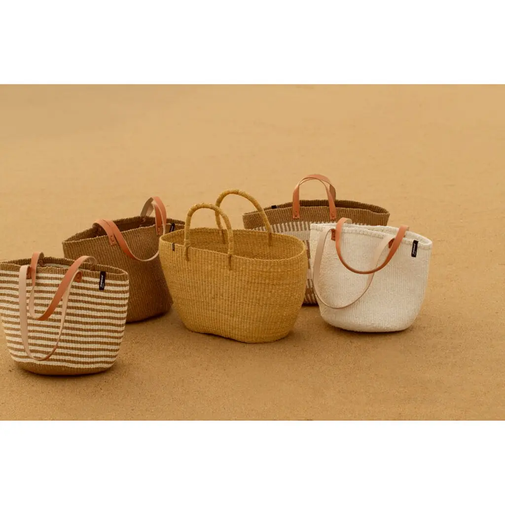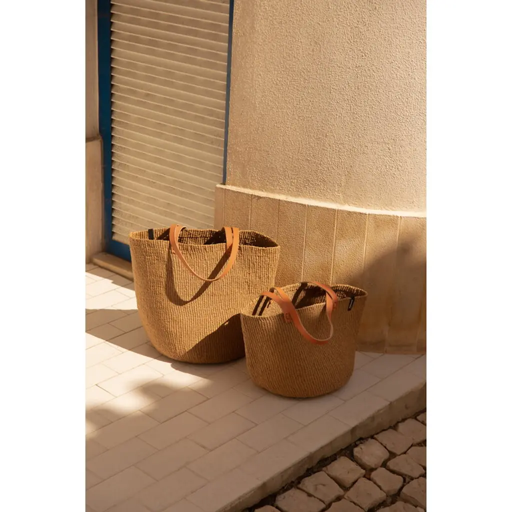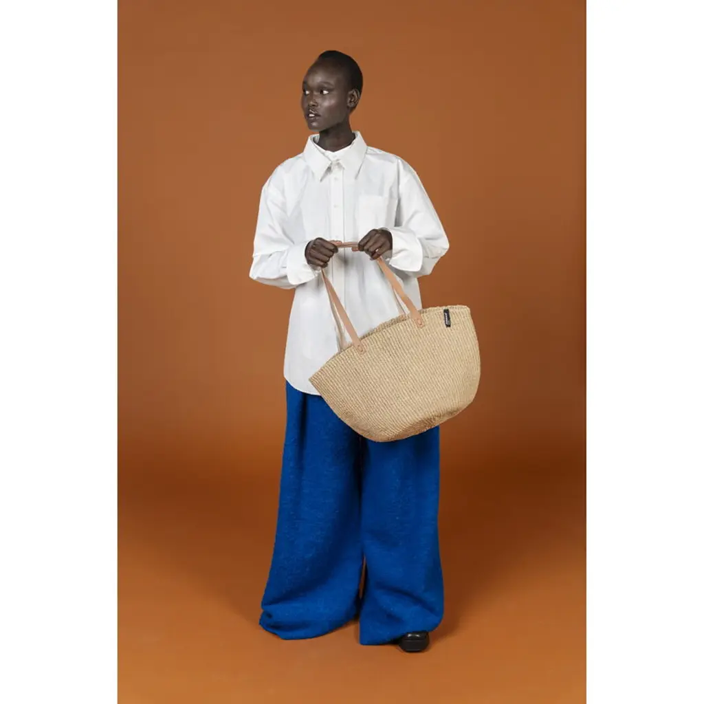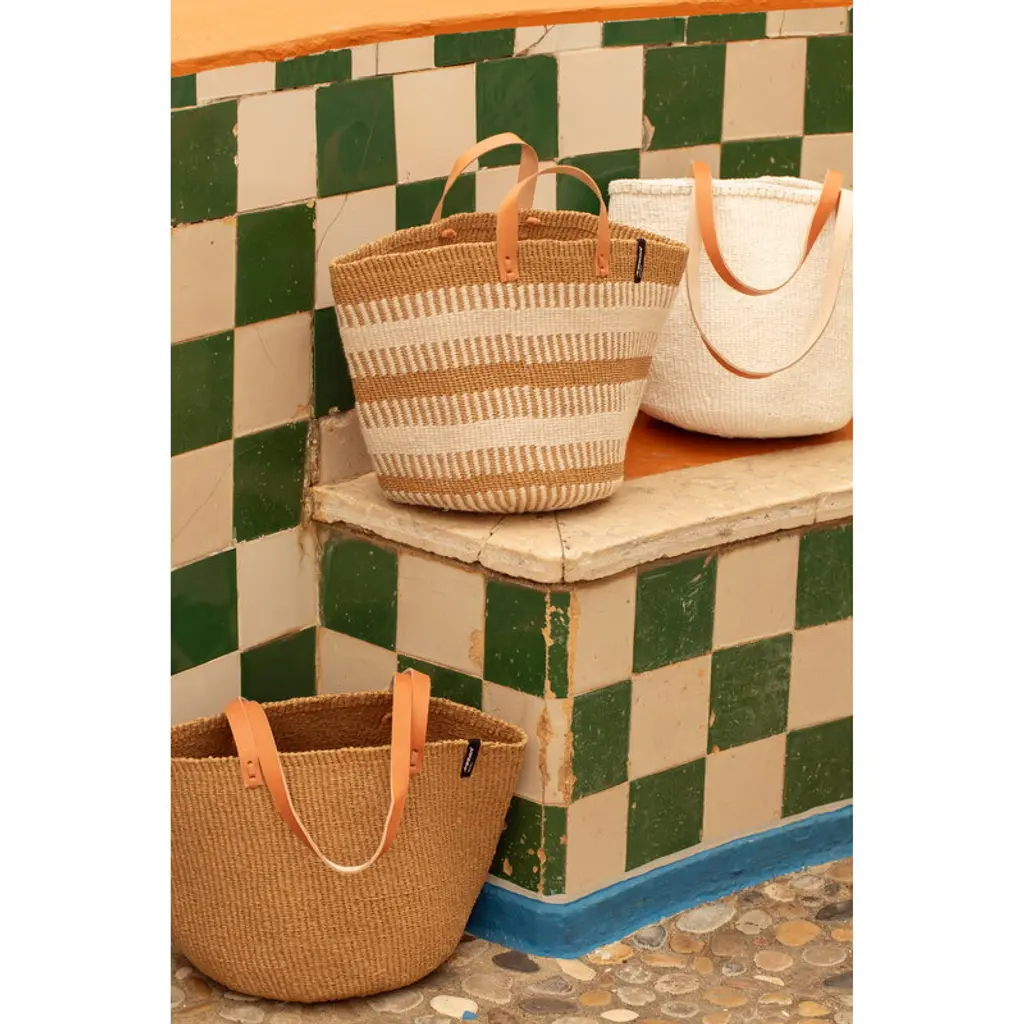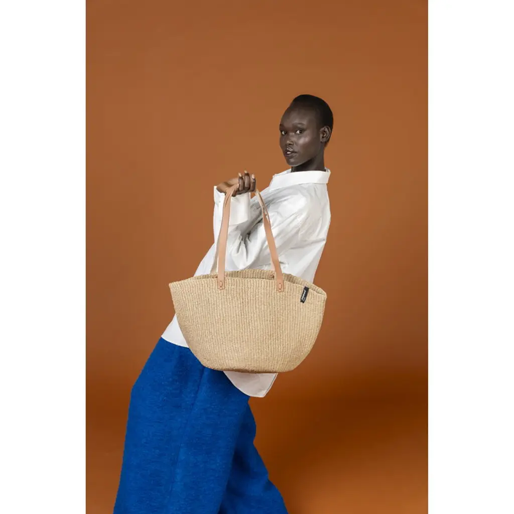 Mifuko’s Kiondo shopper basket brings together traditions from across the globe: Scandinavian design and Kenyan handicraft. Made from sisal and paper, the durable shopper is perfect for carrying groceries but also works well as a summer bag for short trips or the beach, for example. The long leather handles give the shopper a lovely finishing touch and make it easy to carry on your shoulder. The beautiful and unique baskets are hand-made in Kenya, and every piece is signed by its creator.