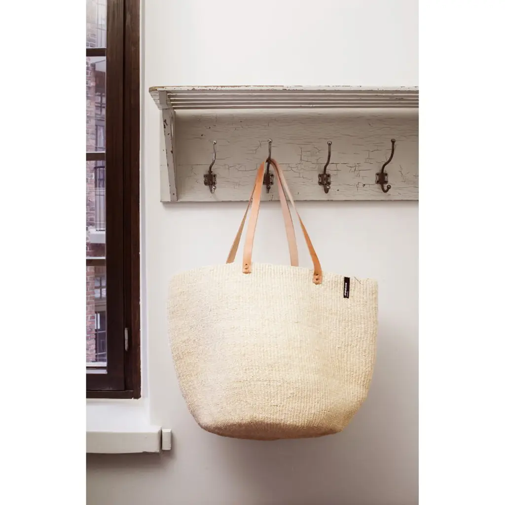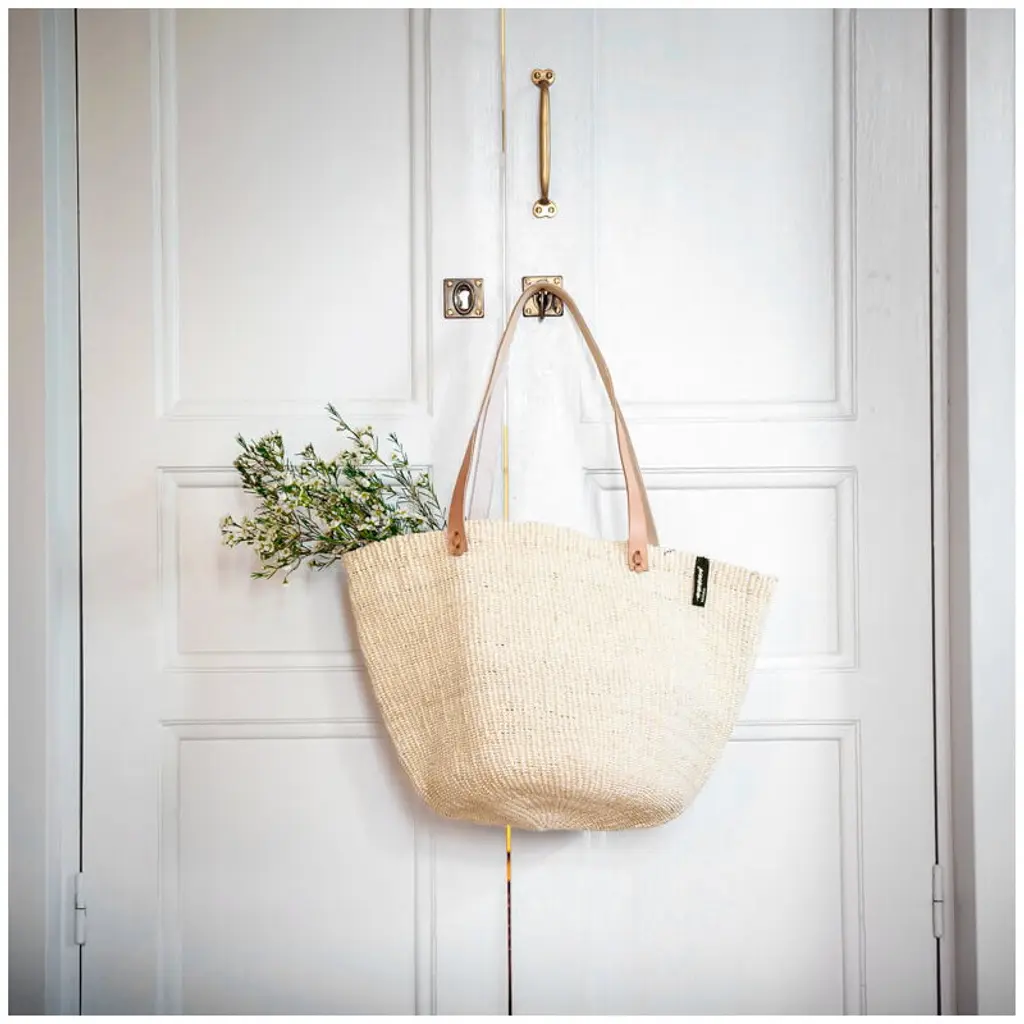 Mifuko’s Kiondo shopper basket brings together traditions from across the globe: Scandinavian design and Kenyan handicraft. Made from sisal and paper, the durable shopper is perfect for carrying groceries but also works well as a summer bag for short trips or the beach, for example. The long leather handles give the shopper a lovely finishing touch and make it easy to carry on your shoulder. The beautiful and unique baskets are hand-made in Kenya, and every piece is signed by its creator.