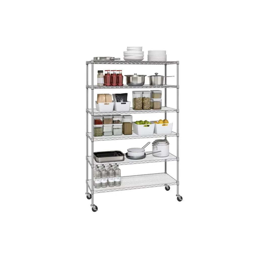 Made of solid carbon steel structure, coated with epoxy resin surface treatment, stainless steel and environmentally friendly, it can prevent corrosion in wet and humid environments The storage cart is well constructed, and each shelf has a load capacity of up to 18 pounds, which can accommodate a variety of items swivel wheels and handle design provide smooth movement. Use locking wheels to ensure your storage cart remains safe and stable without moving. The open mesh tray provides visibility for placed items. Great for storing items, allowing air circulation, reducing dust accumulation, and easy to clean. No tools required for installation, easy to install.