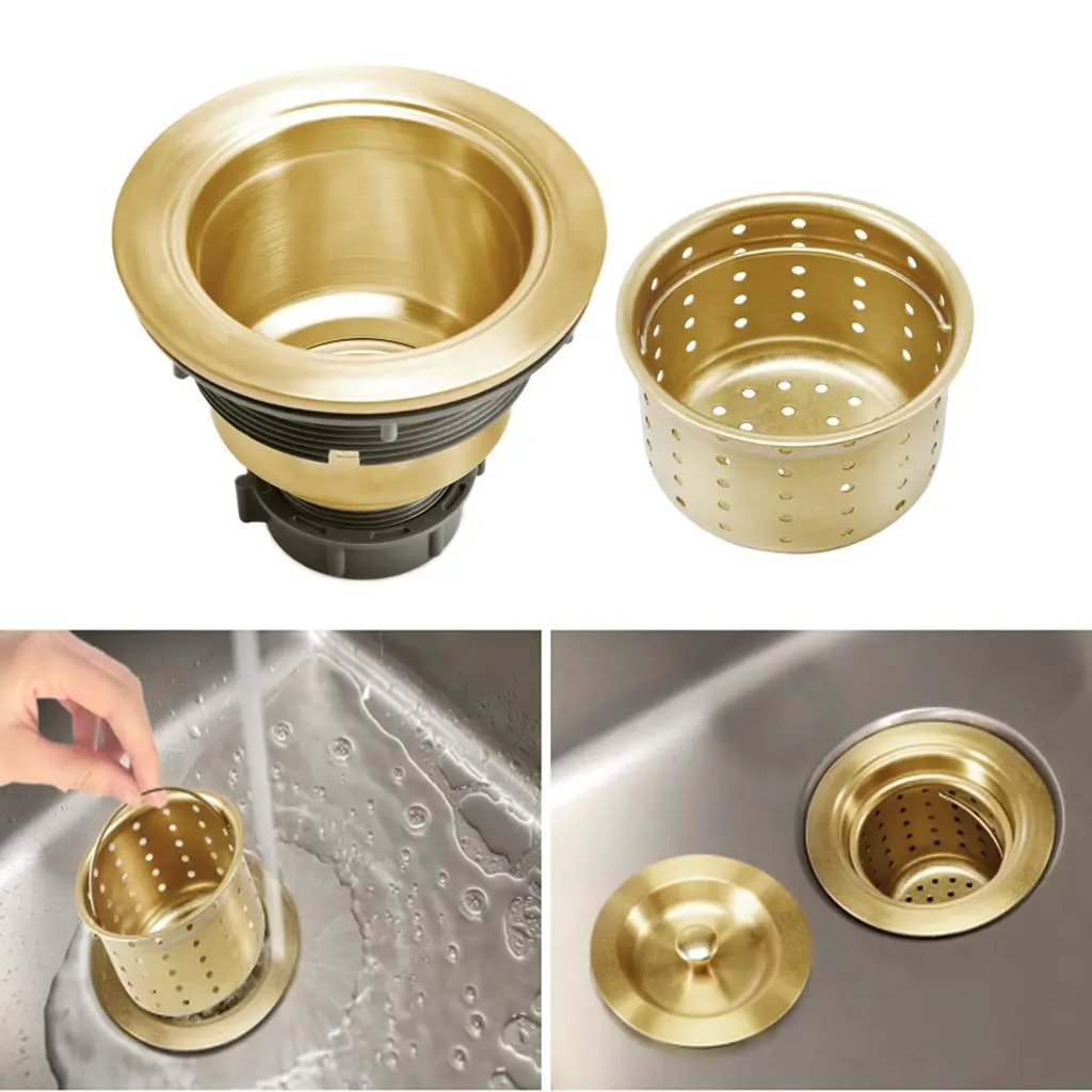 Kitchen Sink Drain 3-1/2 Inch, Stainless Steel Sink Drain Assembly Kit, Gold/black Deep Sink Basket Strainer With Sink Stopper - Gold