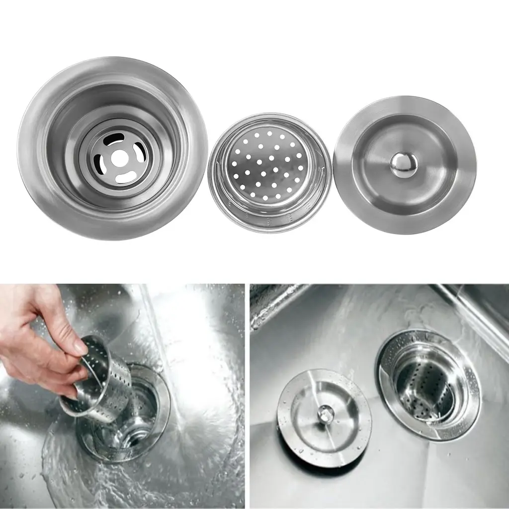 Kitchen Sink Drain 3-1/2 Inch, Stainless Steel Sink Drain Assembly Kit, Gold/black Deep Sink Basket Strainer With Sink Stopper - Silver