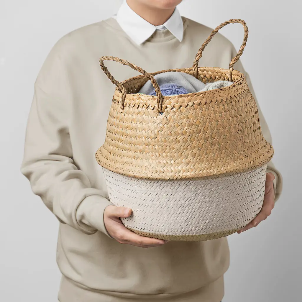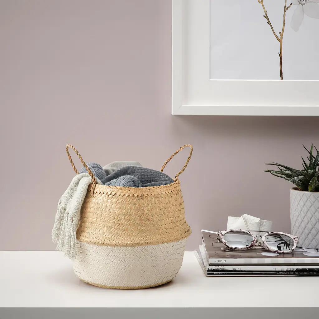 KRALLIG Basket - sedge natural/white 9 ¾ ". You can choose how you want to use this basket – turned up with handles or turned down to display the contents. Sedge is a renewable material with natural color variations that give each product a unique expression. Recommended for indoor use only.