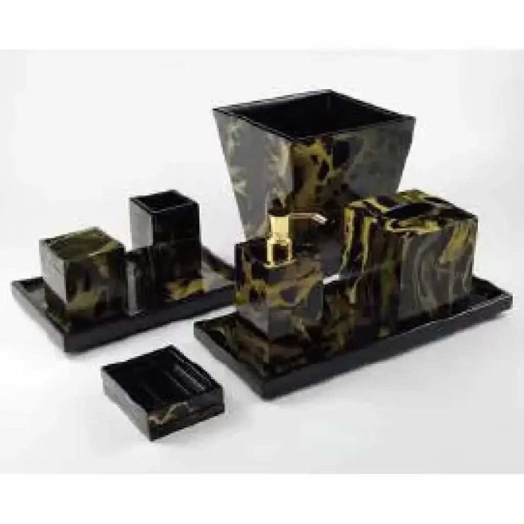 Lacquer Black Gold Marble Waste Basket 9" X 9" X 10"h