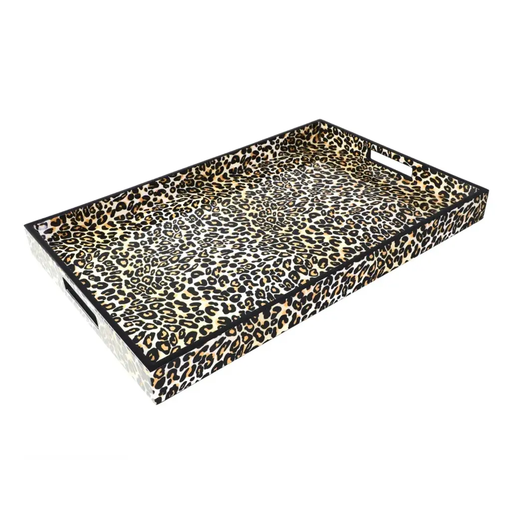 Lacquer Leopard Waste Basket 9" X 9" X 10"h