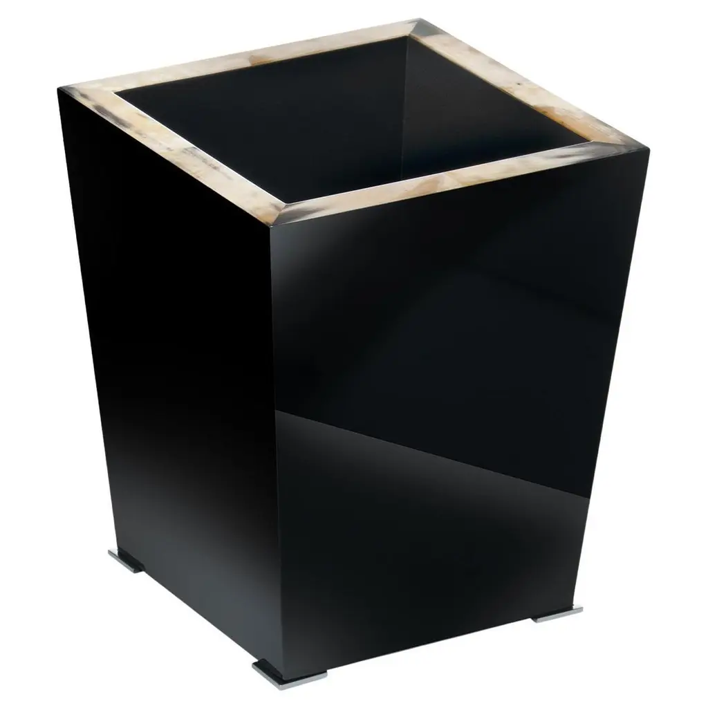 Lacquer Silver Dollar With Sycamore Band Waste Basket 9" X 9" X 10"h