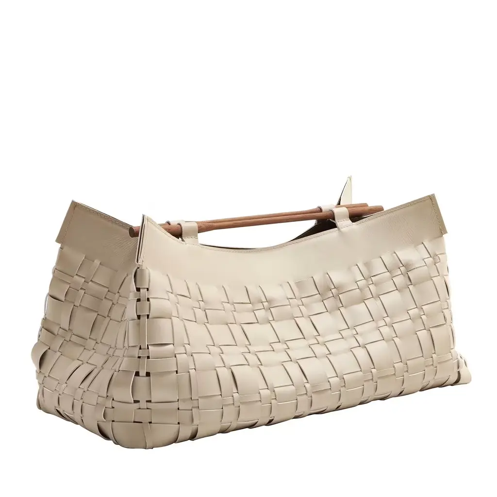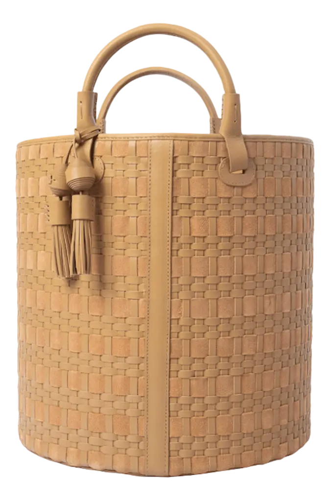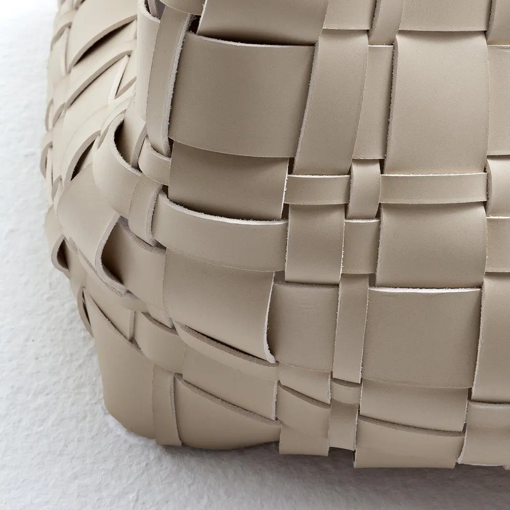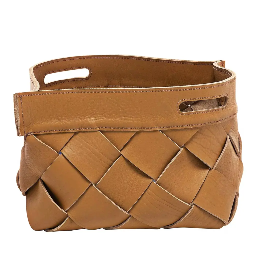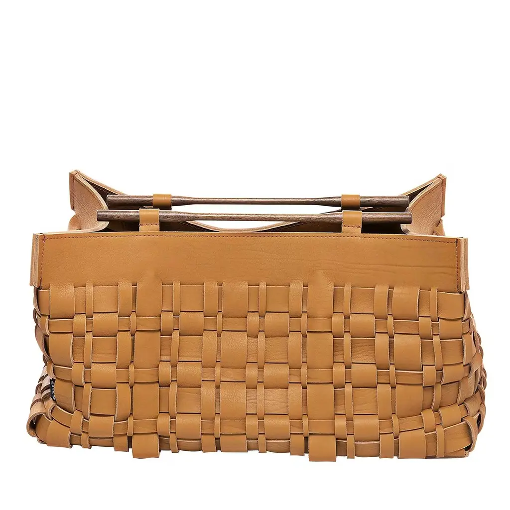 A splendid piece that will infuse a modern interior with refined sophistication, this basket will serve as a magazine rack beside a coffee table, sofa, or chaise longue. Designed by Massimo Castagna, it boasts a stylish and solid silhouette handwoven of saddle leather and enriched with mahogany handles. Other colors are available upon request, please contact the Concierge for details.