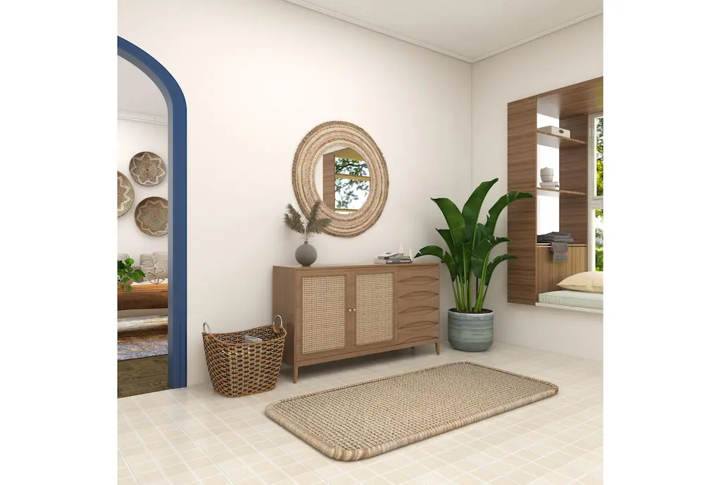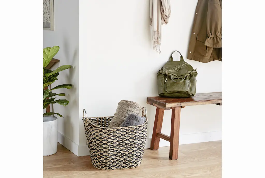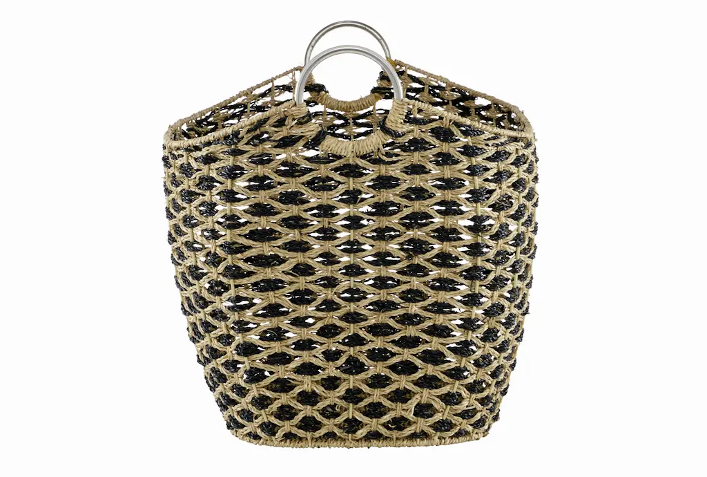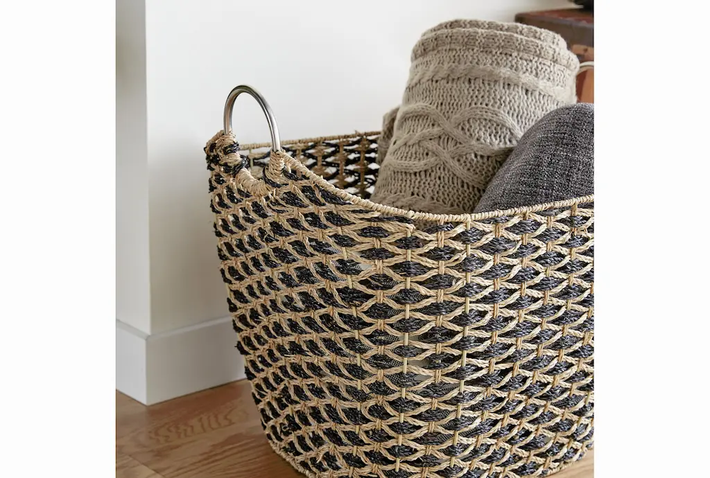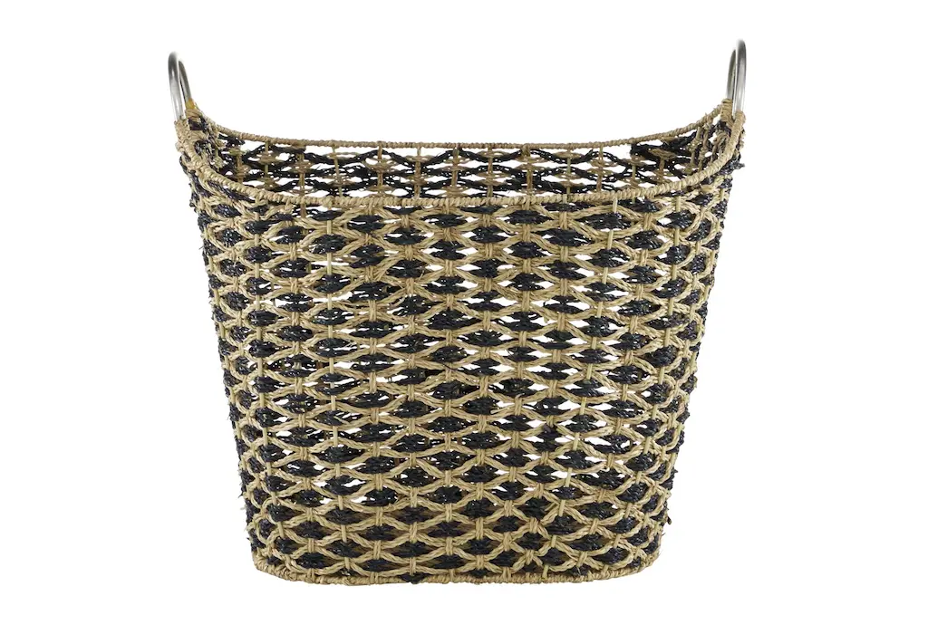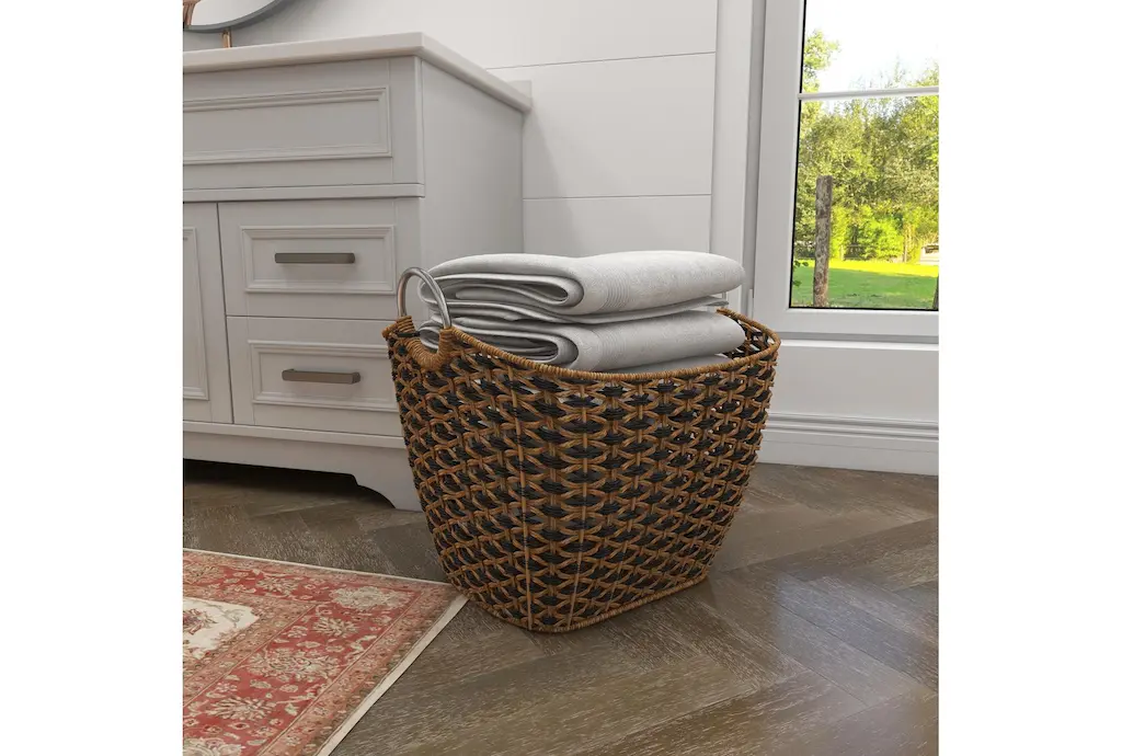 Add a dash of natural beauty within your light-toned living spaces as you place your clean laundry, blankets, and pillows on this multi-purpose wicker basket. This item ships in 1 carton. Easy-carry, sturdy steel handles. Due to the handmade nature of these, there will be slight color, shape, and size variations, as well as loose fibers. Suitable for indoor use only. This item ships fully assembled in one piece. Maximum weight limit is 5 lbs. Made in Vietnam. This is a single brown colored basket organizer. Bohemian style.