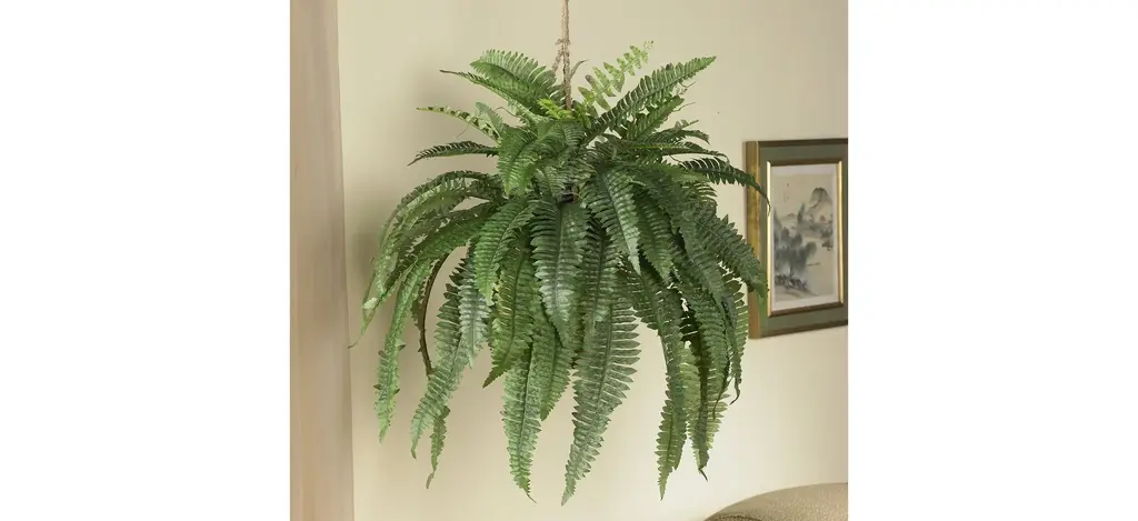 The Boston Fern is one of nature's best-loved ferns. The reasons are obvious - it's big, billowy, has pretty stems and leaves reach out and dip downward in a pleasing effect. no wonder they are used to decorate worldwide. This large Boston Fern hanging basket perfectly personifies everything we love about this plant, with the bonus of never needing water or sun. Makes a great gift as well.