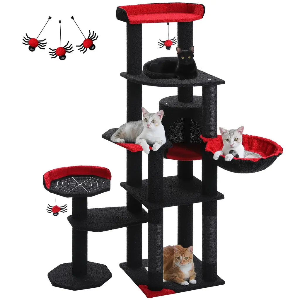 72" Tall, Endless Climbing Fun: With the total height of 72" in 8-level structure, the super large cat tree is perfect for 4-5 big cats who love climbing up and down together. The needs of scratching, climbing, sleeping and exercising can also be fully satisfied! Especially the unique rectangle super large cat condo and wide hammock are much larger than normal ones and perfect for cats resting together. Unique Wide&Vertical Scratching: Cats love to scratch. The unique scratching pad with the large size of 10.2"X6.7" on the bottom provides one more horizontal area for cats sharpening nails and having fun. Plus, with 7 reinforced posts wrapped with natural sisal on multiple levels, they can scratch to their hearts' content and keep away from expensive furniture! Designed for Large Cats: Featuring a super large hammock, it is stable&wide enough to support your 2 fatty furry friends having a catnip.And the extra spacious cat condo measuring 21"X12"X10" perfectly satisfy the needs of sleeping and playing. Fully stretching their bodies, Lounging for a nap, playing hide-and-seek, chubby cats(like Marine Coon and Ragdoll between 15-20 lbs) could do whatever they want in this condo paradise. Have Fun In Safety: Security is always the priority. Sturdy construction with a large thick base could support your kittens to climb up and down safely. Solid particle board provides excellent durability and premium plush material offers a skin-friendly experience. Also, the posts are covered with 100% natural sisal to perfectly meet scratching needs.