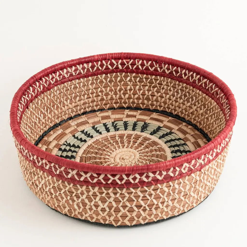 Large Manuela BasketLarge checkered basket is carefully handwoven of dyed pine needles and raffia with pajón, a native grass in Guatemala. This decorative and detailed basket, beautiful on display, is also very functional - a very special addition to a festive occasion table and a great gift. Dimensions: 11.8" l x 11.8" w x 3.8" h About Mayan HandsOur artisan partners in Guatemala are proud to offer you their exquisitely crafted pine needle baskets. Handmade from sustainably sourced longleaf pine needles and pajón, a native wild grass found in the Guatemalan Highlands, these heirloom-quality baskets will enhance the home with their natural beauty and texture and their subtle fragrance. Basket makers masterfully combine color, form, and fine stitches to create baskets that, while perfect for display, are entirely functional as well. An ever-expanding community is collecting these baskets, each of which bears a tag signed by the basket artist who crafted it.Mayan Hands is a fair trade nonprofit organization partnering with about 200 talented Mayan women in the Guatemala Highlands. Though recognized worldwide as extraordinary weavers and artisans, Mayan women experience discrimination, poverty, and marginalization in their home country. However, when provided with economic and educational opportunity, our artisan partners and their families thrive. Families access better nutrition and health care, children – even the girls – attend school, and women invest in their local economies. Programs that support our artisan partners in realizing their potential as artists, businesswomen, and leaders in their communities create lasting change at home, and allow the women to share their creativity and culture with the global community.