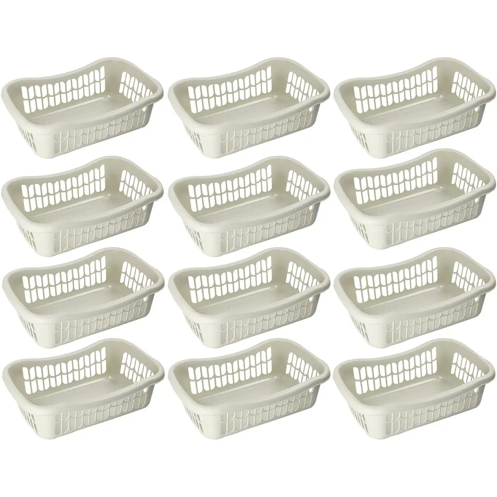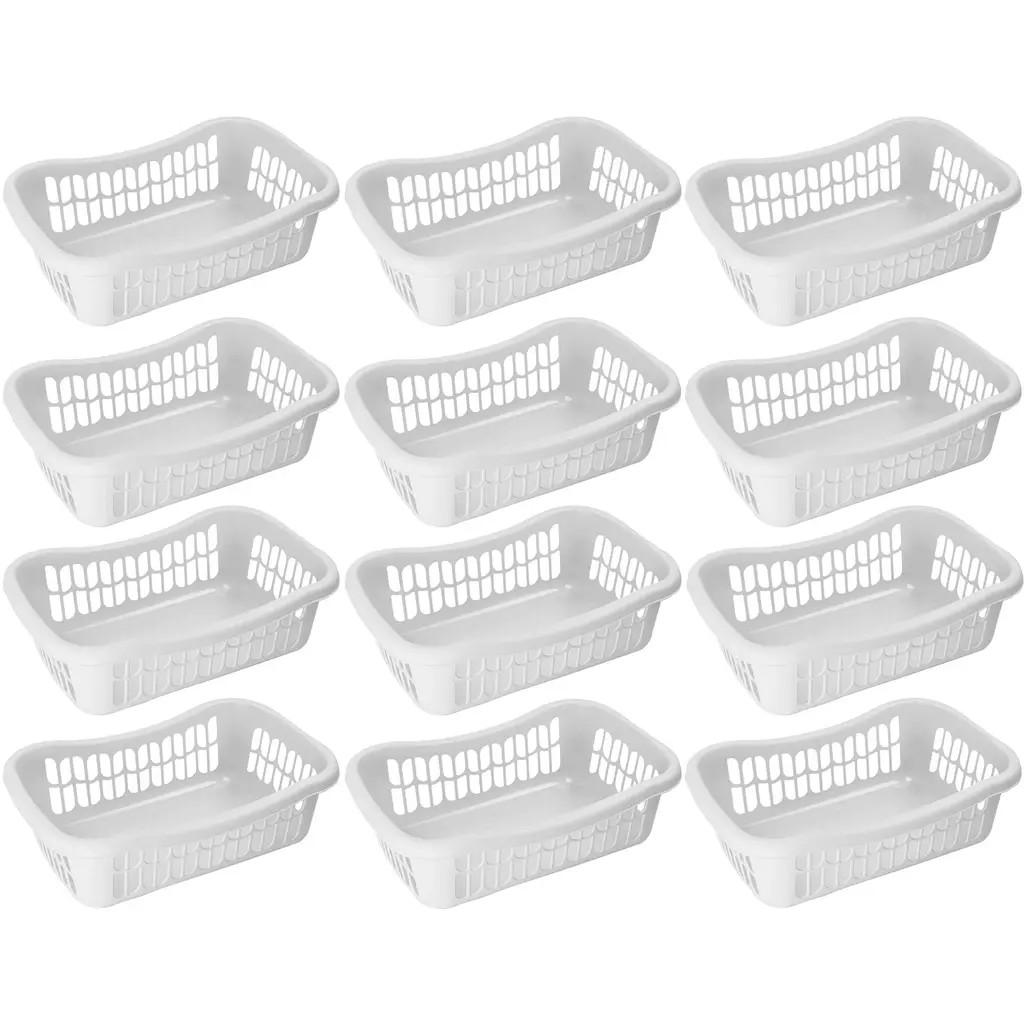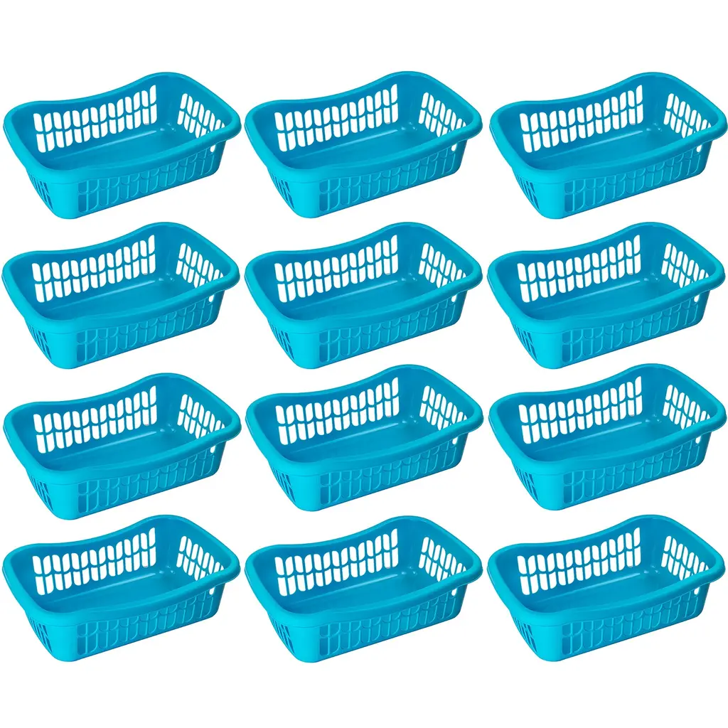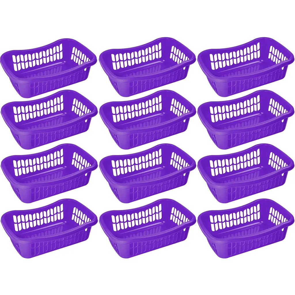 Organize all the commonly used stuff around your home with this large rectangular plastic storage basketWhether you need to organize the kitchen pantry, bathroom shelves, closet, or kids’ room, this plastic basket expedites the process to keep everything organized and easy to access. This basket is solidly made to contain items and heavy objects from kitchen pantry, shelves, bedroom, closet, shelves, and other areas around your house without acting flimsy or wobbly.Featuring vented holes for airflow, it is made of BPA-free plastic material and withstands common tear and wear for long-term durability.Attractive Colors to Choose FromStorage baskets built with personality and style in mind. We offer these trays in eight vivid colors to match your living settings: