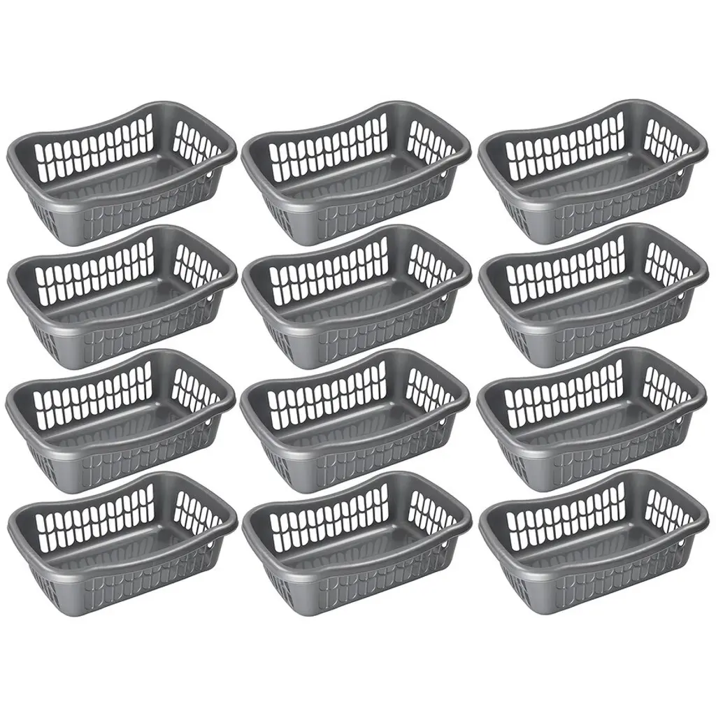 Large Plastic Storage Basket For Organizing Kitchen Pantry, Kids Room - Grey