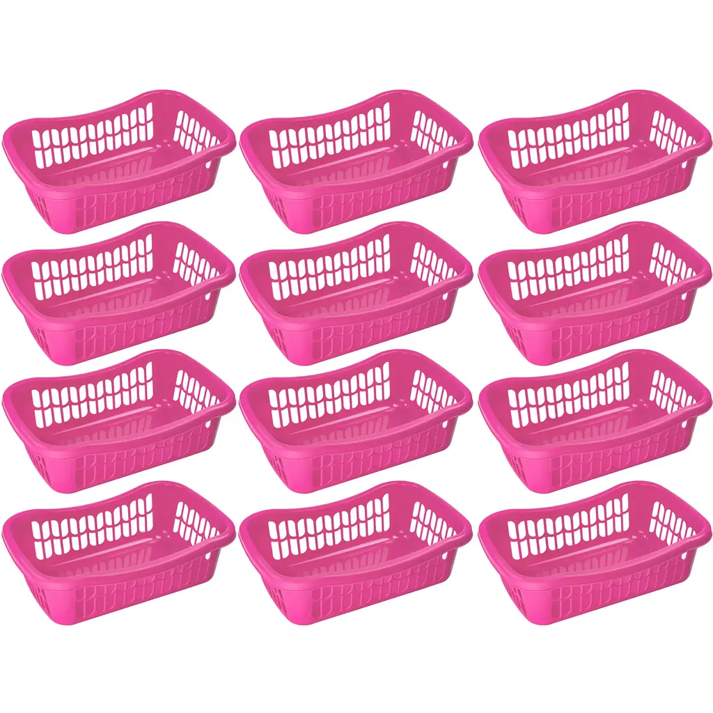 Organize all the commonly used stuff around your home with this large rectangular plastic storage basketWhether you need to organize the kitchen pantry, bathroom shelves, closet, or kids’ room, this plastic basket expedites the process to keep everything organized and easy to access. This basket is solidly made to contain items and heavy objects from kitchen pantry, shelves, bedroom, closet, shelves, and other areas around your house without acting flimsy or wobbly.Featuring vented holes for airflow, it is made of BPA-free plastic material and withstands common tear and wear for long-term durability.Attractive Colors to Choose FromStorage baskets built with personality and style in mind. We offer these trays in eight vivid colors to match your living settings: