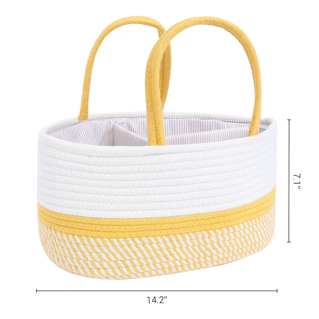 Discover the perfect blend of style and practicality with the Comfy Cubs Rope Diaper Caddy. Available in three chic colors—Blush, Pacific Blue, and Sage—this organizer not only neatly stores your baby essentials but also enhances the aesthetics of your nursery. The spacious dimensions of 8.5"D x 15"W x 8"H ensure you'll never run out of room for diapers, wipes, and more. This caddy is meticulously crafted from premium cotton for lasting durability. Its three roomy compartments can accommodate all your baby necessities, making it an essential part of your nursery storage. But its use extends beyond the nursery. Take it on the go for quick diaper changes in the car or use it as a convenient organizer on your changing table. The multifunctionality of this caddy underscores its indispensability in any household. But the Comfy Cubs Rope Diaper Caddy is not just for personal use. Its trendy design and practicality make it the perfect baby shower gift. It's an ideal addition to a gift basket or as a standalone present. New parents will appreciate the thoughtfulness of a gift that helps keep their baby essentials organized and close at hand. Explore the convenience and style of the Comfy Cubs Rope Diaper Caddy and transform your diaper changing routine into an effortless task. This is not just a diaper caddy; it's a lifestyle upgrade for new parents, designed for ease of use, style, and durability. Versatile and Spacious: With three roomy compartments, this caddy organizer with handles can hold all baby essentials. It's perfect as a baby organizer for nursery, a car caddy for on-the-go changes, or a baby changing basket. Stylish and Practical: The Comfy Cubs Rope Diaper Caddy is more than just a diaper caddy organizer. Available in three trendy colors: Blush, Pacific Blue, and Sage, it enhances your nursery's aesthetics while providing a practical solution. The generous dimensions of 8.6"D x 14.2"W x 7"H ensure ample storage space. Quality Material: Made from premium cotton, this durable diaper bag organizer is designed to last. It's the ideal blend of practicality and style, making it a staple item for any baby storage needs or as a baby diaper caddy. Perfect Gift Option: Our Comfy Cubs Rope Diaper Caddy is the perfect addition to any gift baskets empty to fill or as a standalone baby shower gift. It's a practical and thoughtful choice that any new parent will appreciate. Wide-ranging Functionality: This caddy extends beyond just diaper storage. It serves efficiently as a changing table organizer or a convenient nursery storage basket. The multiple uses of this caddy make it an essential fixture in any family home.