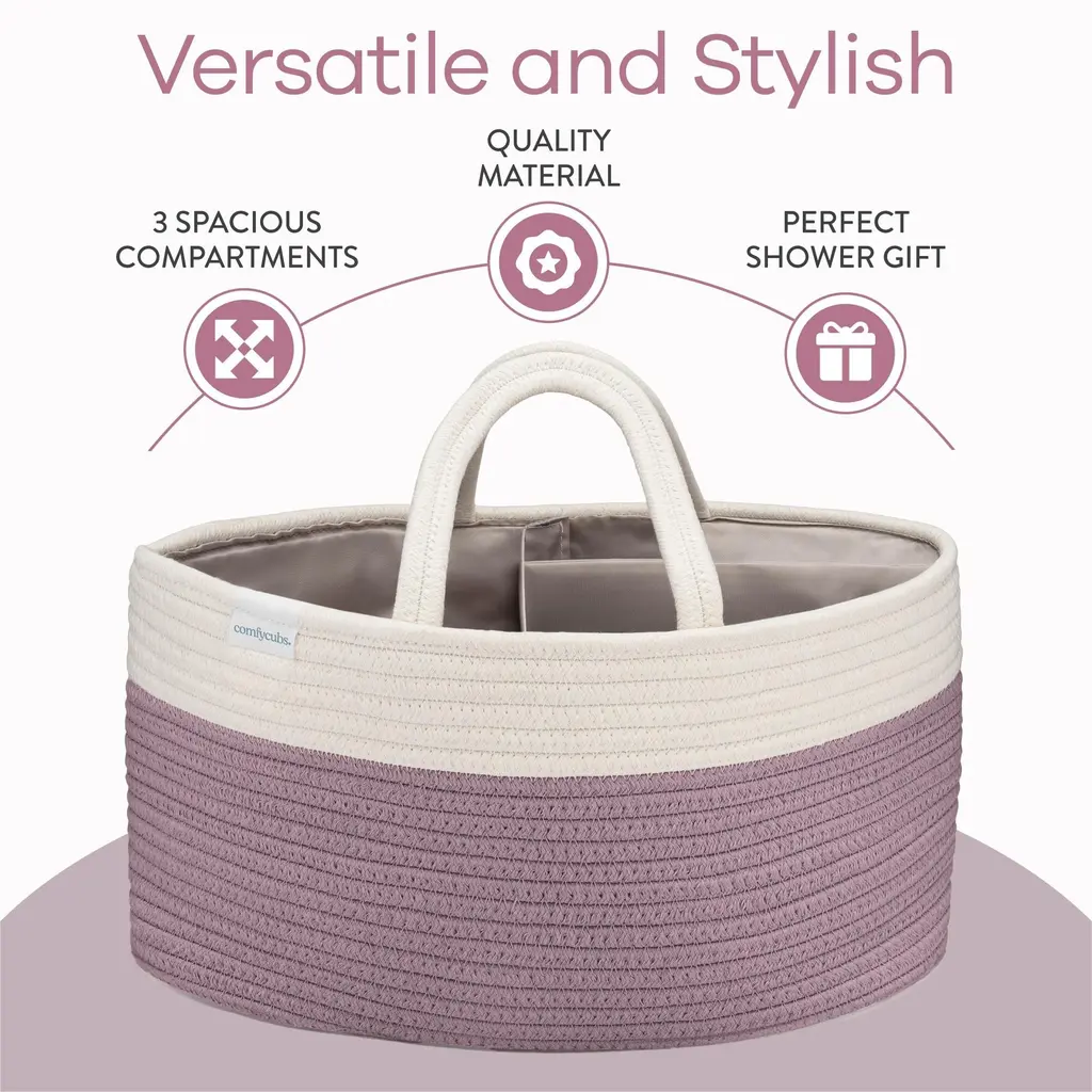 Large Portable Baby Diaper Caddy Organizer Nursery Storage Bin And Car Travel Basket By Comfy Cubs - Mauve
