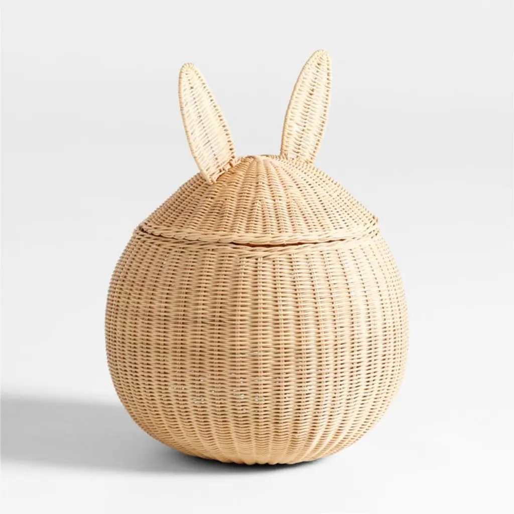 Designed to delight, our Bunny Floor Basket is a totally charming storage essential to keep kids' favorite things out of sight but within reach. Crafted from gorgeous natural rattan, the basket's perky ears are cute as can be, and the neutral color fits well in any kid's room, nursery or play space. When it's cleanup time, toys and books will practically hop right in.